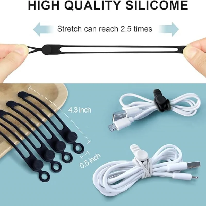 High-quality material: The cable ties are made of high-quality silicone material, soft and elastic, durable, easy to clean and reusable
