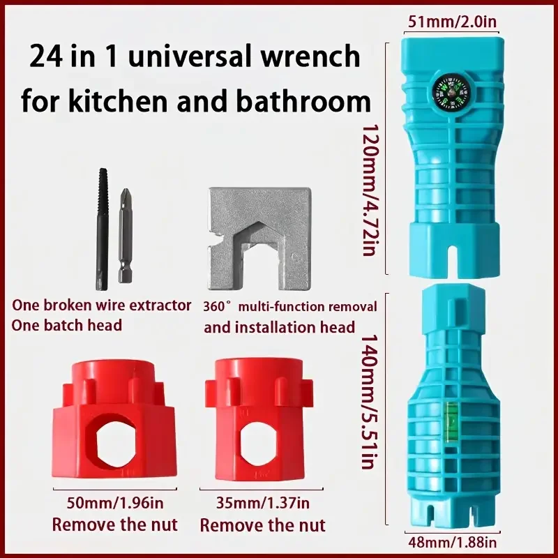 1PC Professional 24 In 1 Multifunction Faucet & Sink Installer Wrench Plumbing Tool Water Pipe Spanner For Kitchen Bathroom