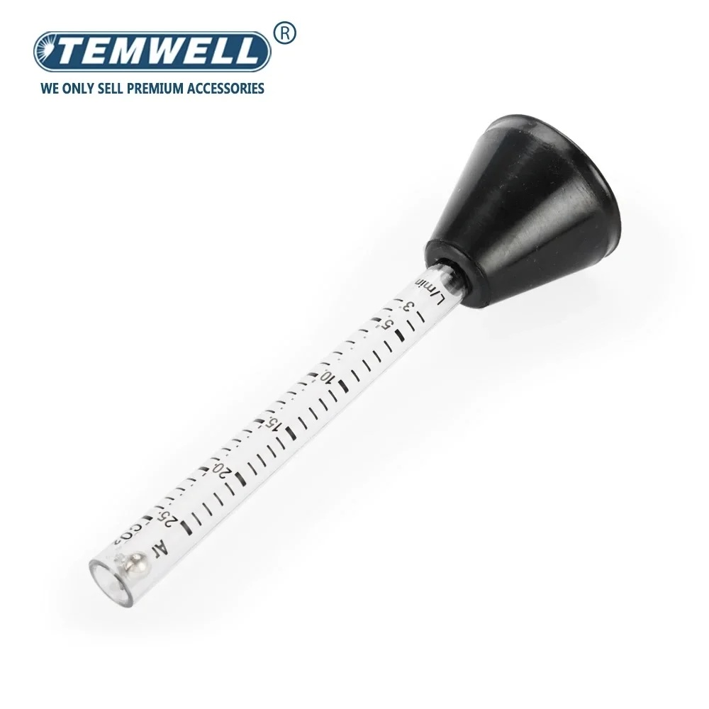 Flowmeter tester scaled from 0 - 25 litres per minute in one litre graduations, used for testing the gas flow at the Mig or Tig torch.