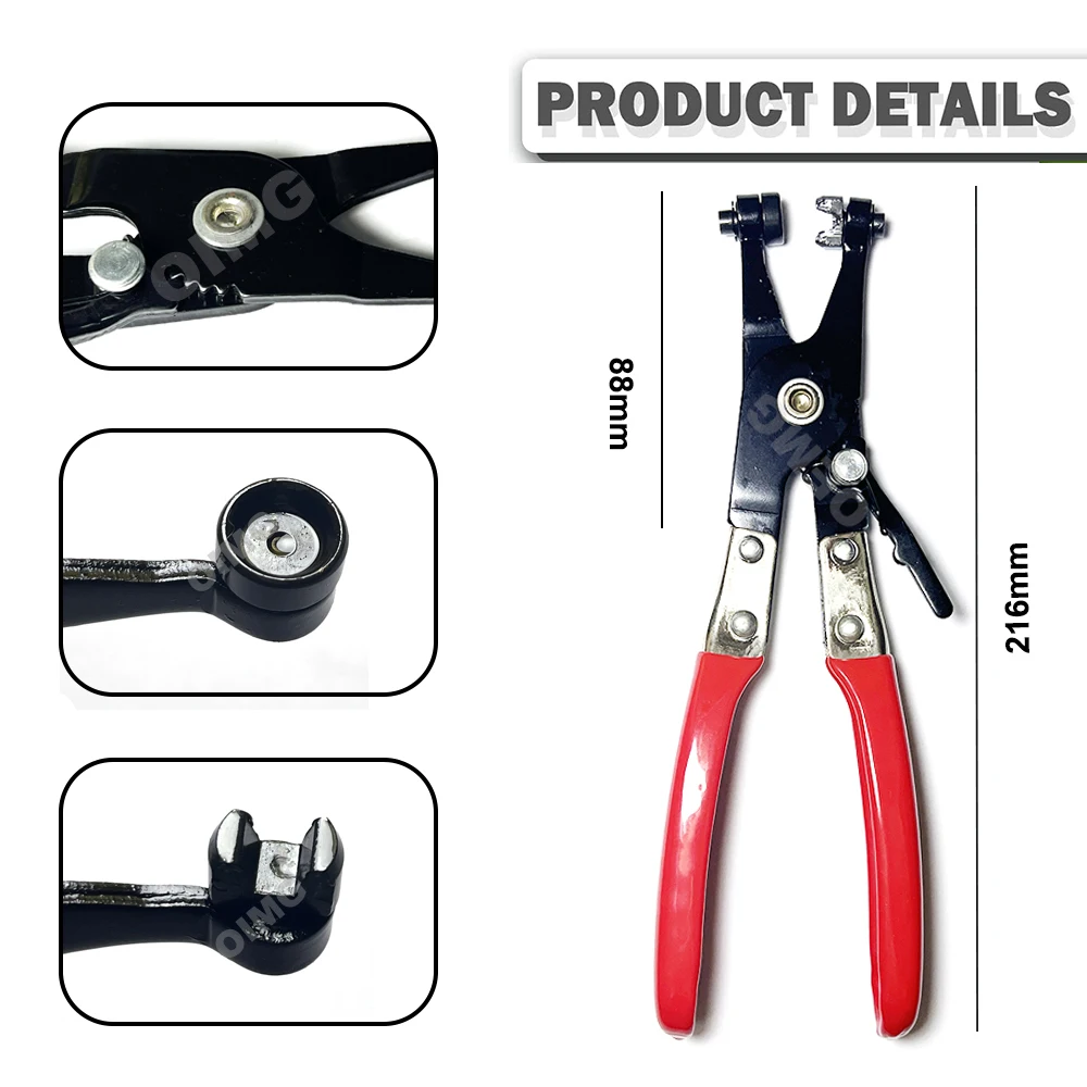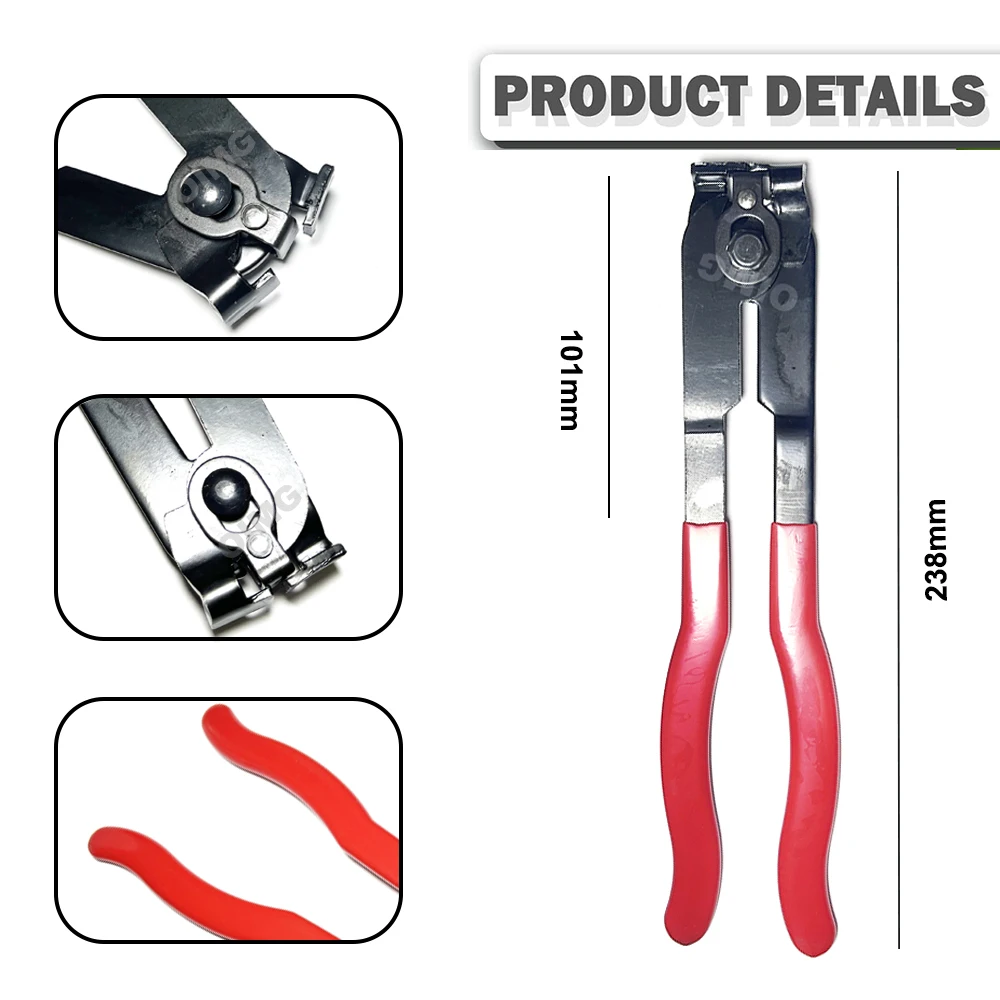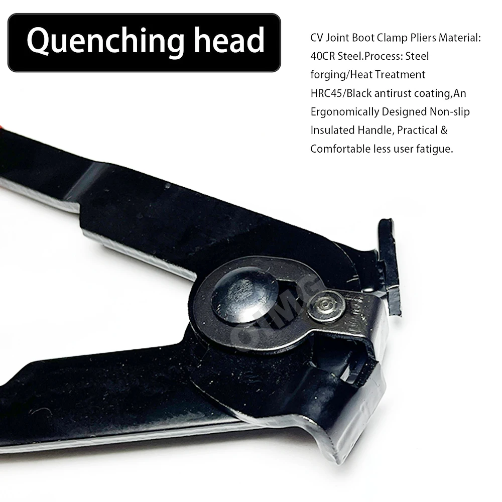 【CV Boot Crimp Pliers】Made from high-carbon steel with black-coated finish. Long rubber handles for extra comfort in use. The boot crimp pliers not only cuts and flattens ear type on CV joint boots, but also tighten the ear clamps on a fuel filter hose and cooling system hoses.