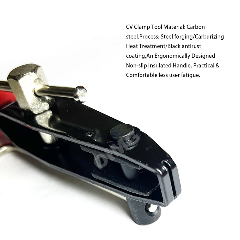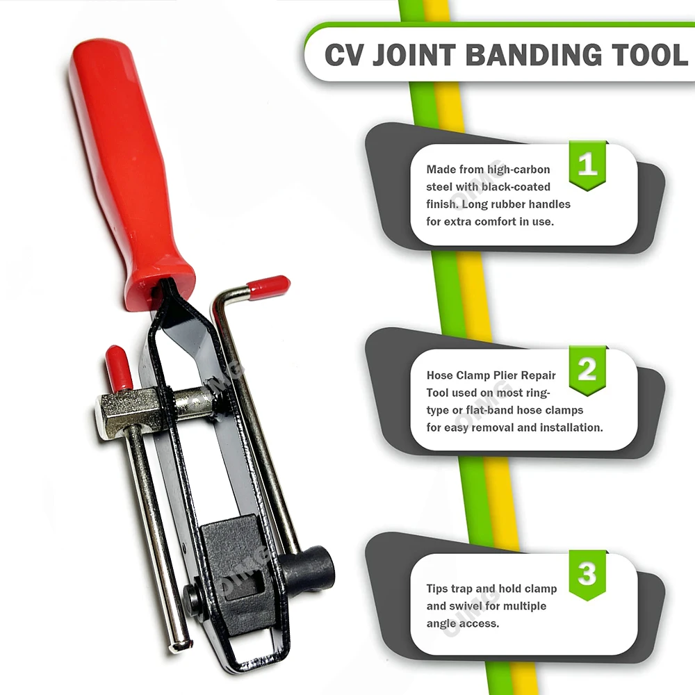 【Professional CV Joint Banding Tool 】Made of black coated stamped steel, designed with long comfortable double dipped handles for more productivity, which are heavy duty and perfect for installing CV Clamps.
