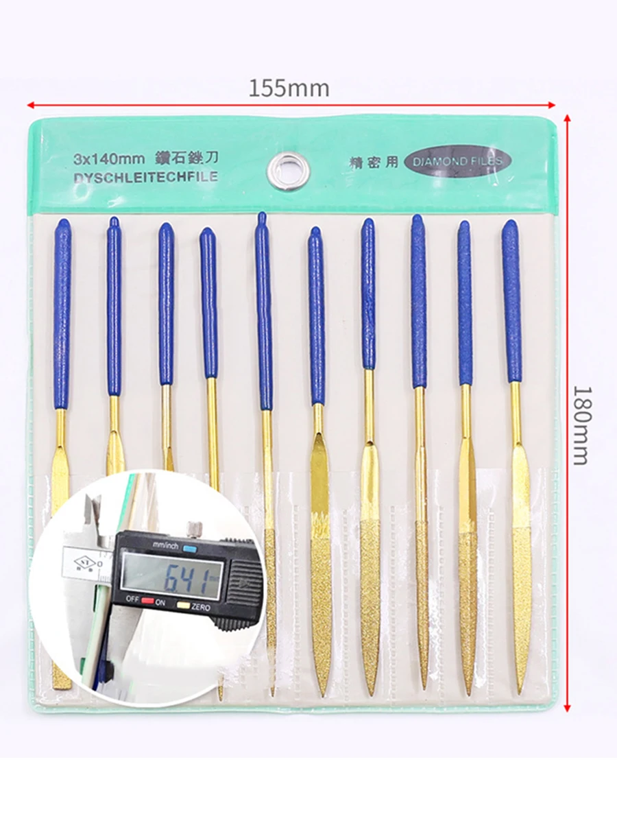 Sanding Polishing Alloy Tools Woodworking Assorted Wood File Titanium Plated Diamond File 3*140mm Set Files Wear-Resistant