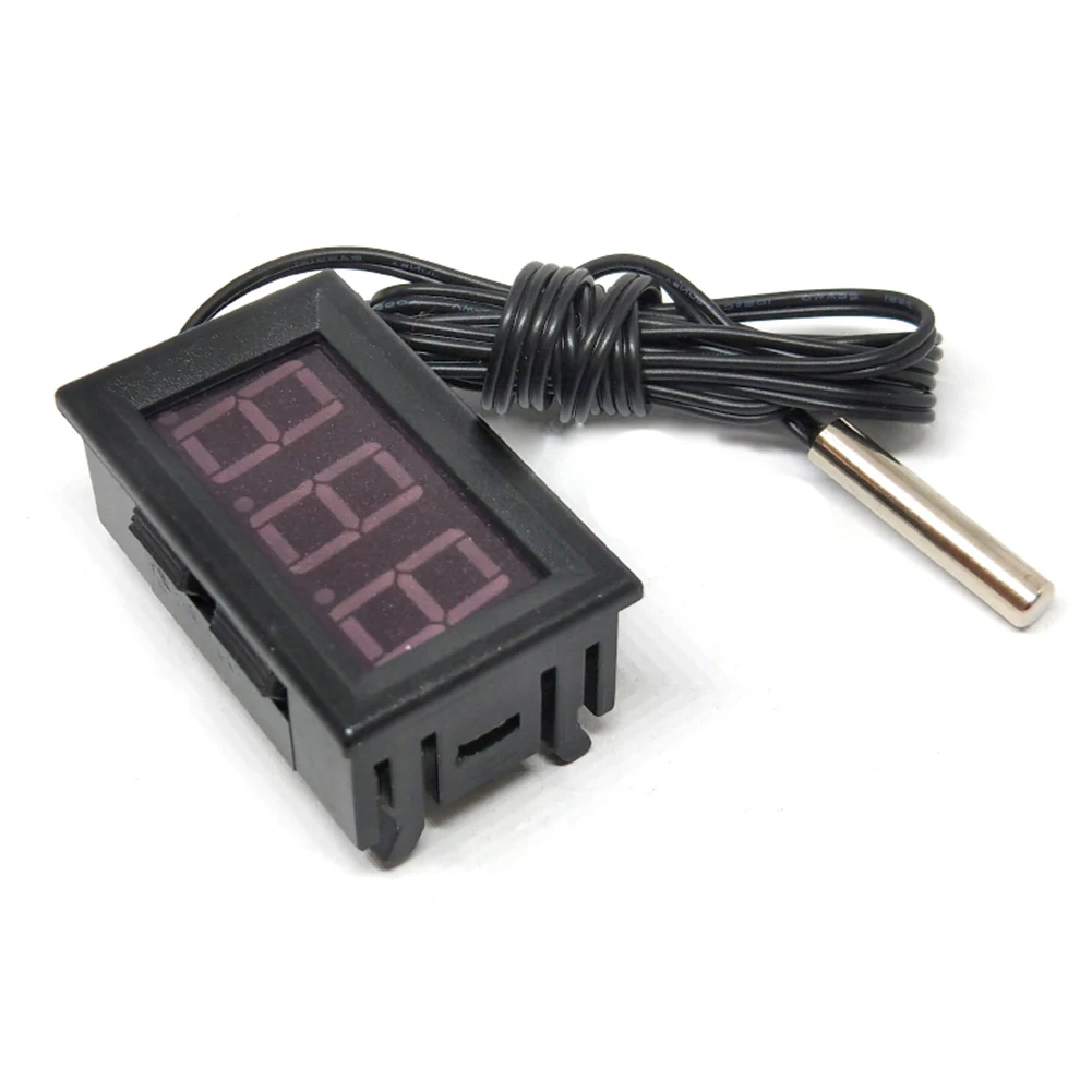 0.56inch LED Digital Temperature Sensor Module Meter Detector DC 5-12V Thermometer Tester Panel Gauge with Sensors Probe Temperature Instrument Feature: 1. Durable Material: Constructed from high-quality materials, the temperature sensor module meter detector is built to last, ensuring durability and resilience even in challenging environments. 2. Clear Digital Display: Featuring advanced digital display technology, the thermometer tester panel gauge offers clear and easily readable digital numbers, making it simple to monitor temperature readings at a glance. 3. Compact and Easy to Install: The compact size of the thermometer sensor makes it incredibly convenient to install in a variety of settings, from home to industrial environments, without taking up much space. 4. High Precision and Reliability: Known for its high measurement accuracy, the thermometer gauge provides stable and reliable temperature readings, ensuring precise monitoring across diverse applications. 5. Versatile Applications: Ideal for a wide range of temperature monitoring needs, the temperature instrument can be used in cars, for body temperature checks, in pools, aquariums, glass containers, breeding tanks, water tanks, refrigerators, and various industrial equipment.
