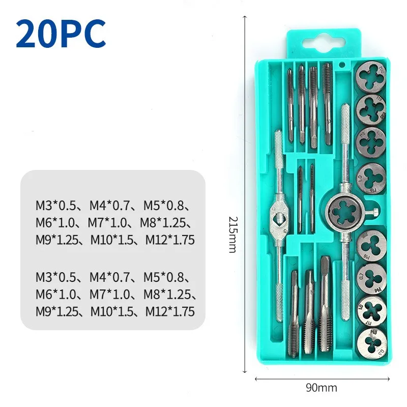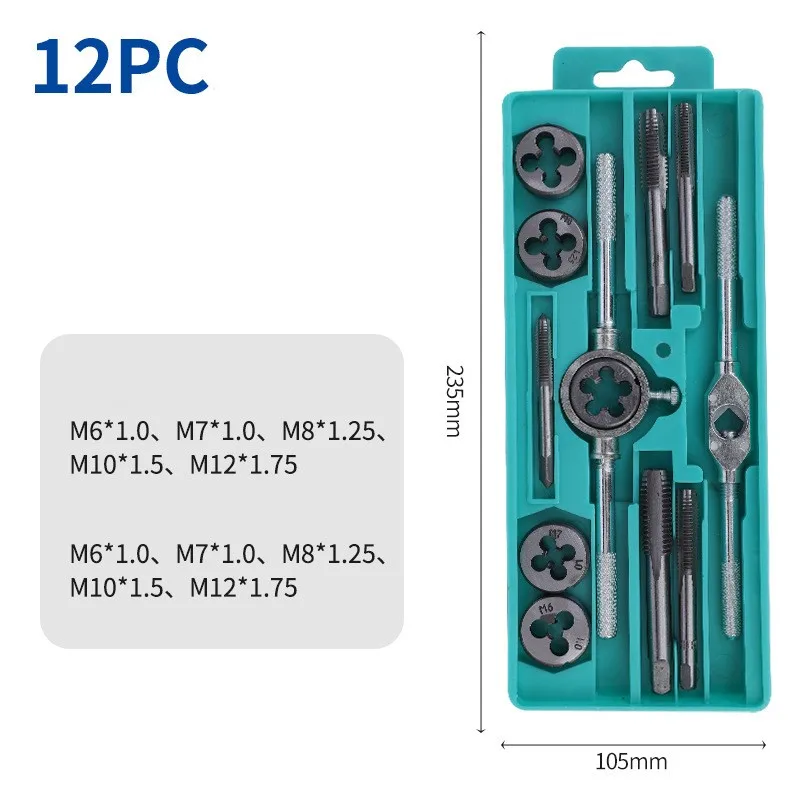 12/20pcs Metric Wrench Set Tap Wrench and Die Set M3, M4, M5, M6, M7, M8,M9,M10,M12 Nut Bolt Alloy Metal Hand Tools Storage Box