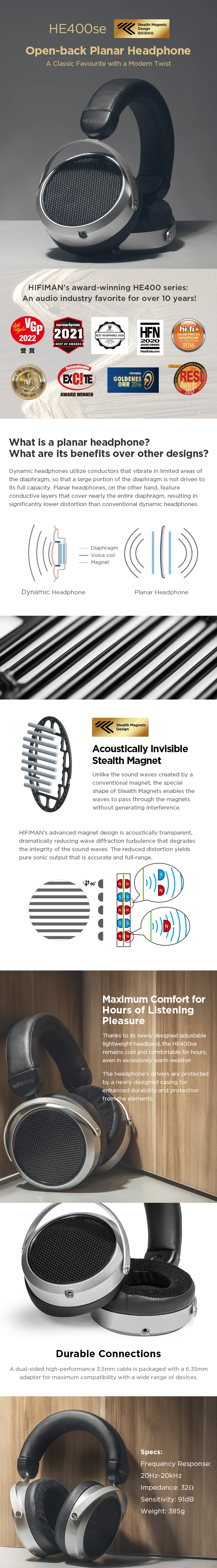 HIFIMAN HE400SE Stealth Magnets Over-Ear Open-Back Full-Size Planar Magnetic Wired Headphones