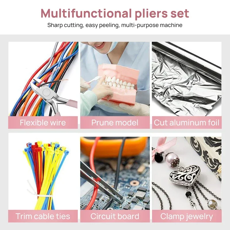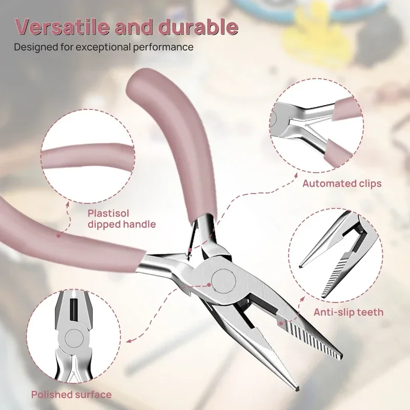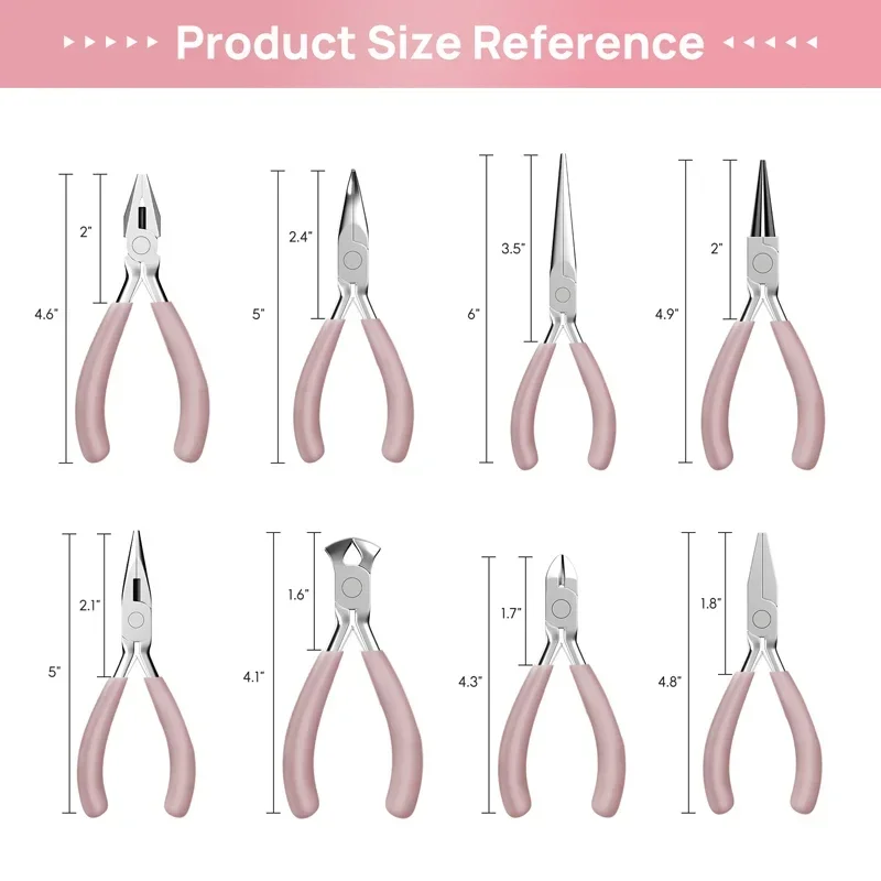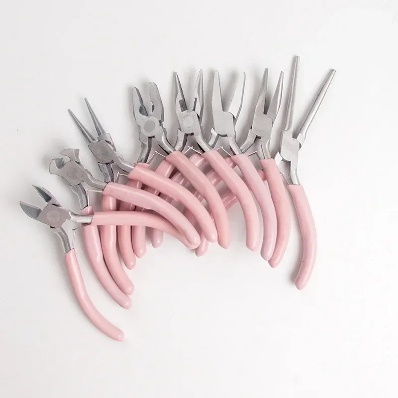 Pink Color Round Nose Cutting Wire Plier Stainless Steel Pliers Tools Set Kit For Handcraft Beading DIY Jewelry Making