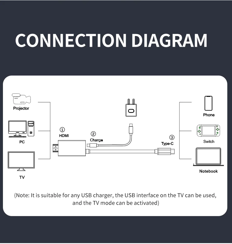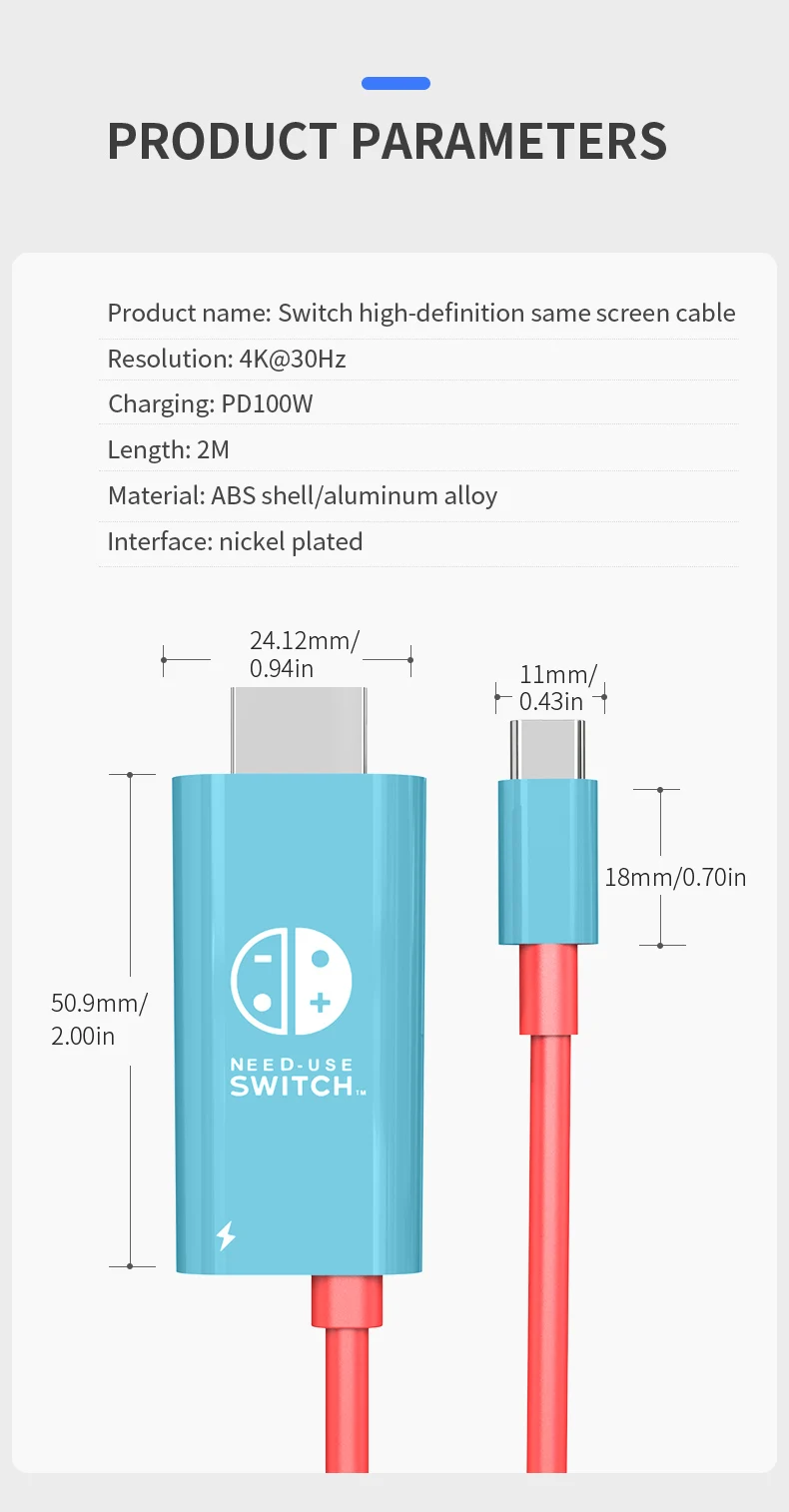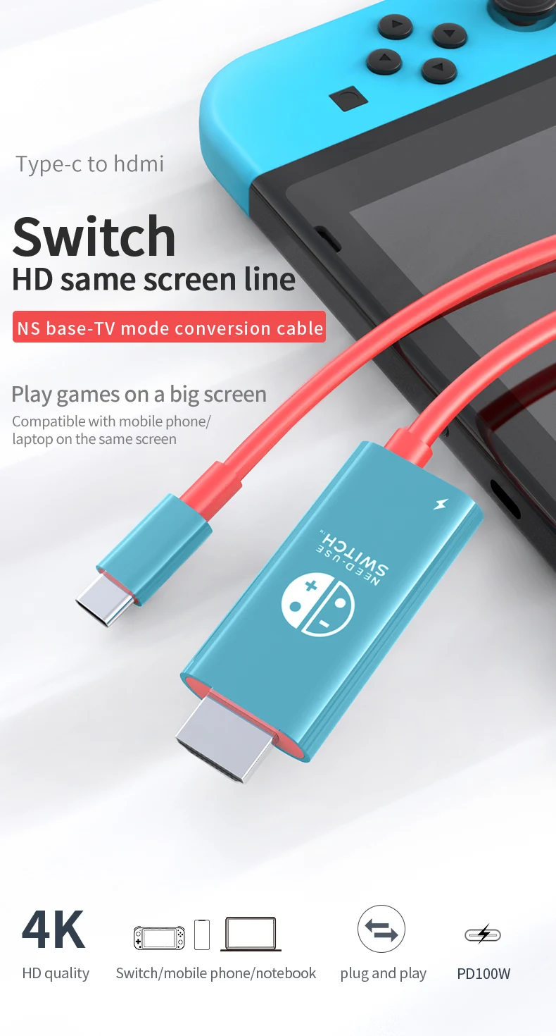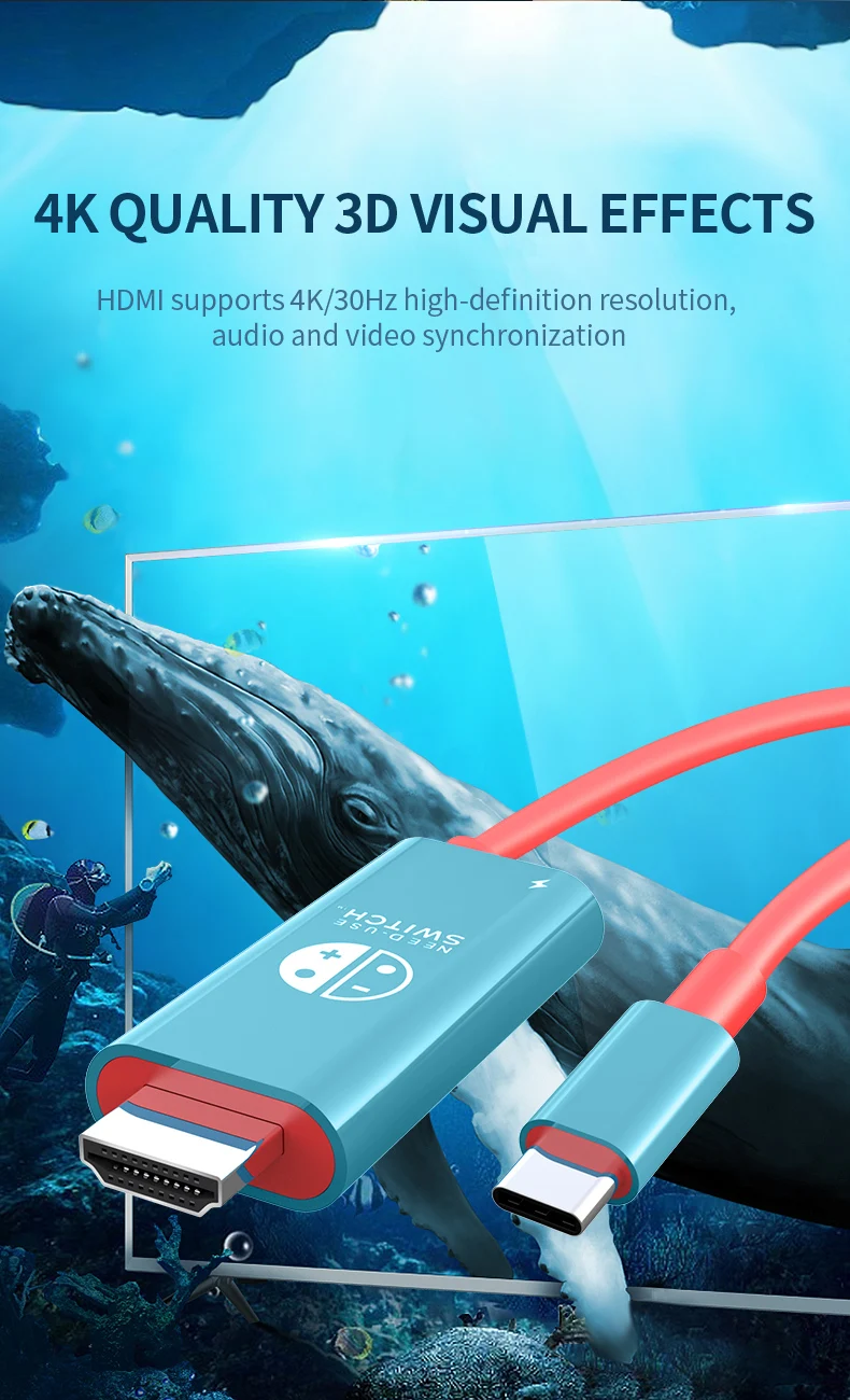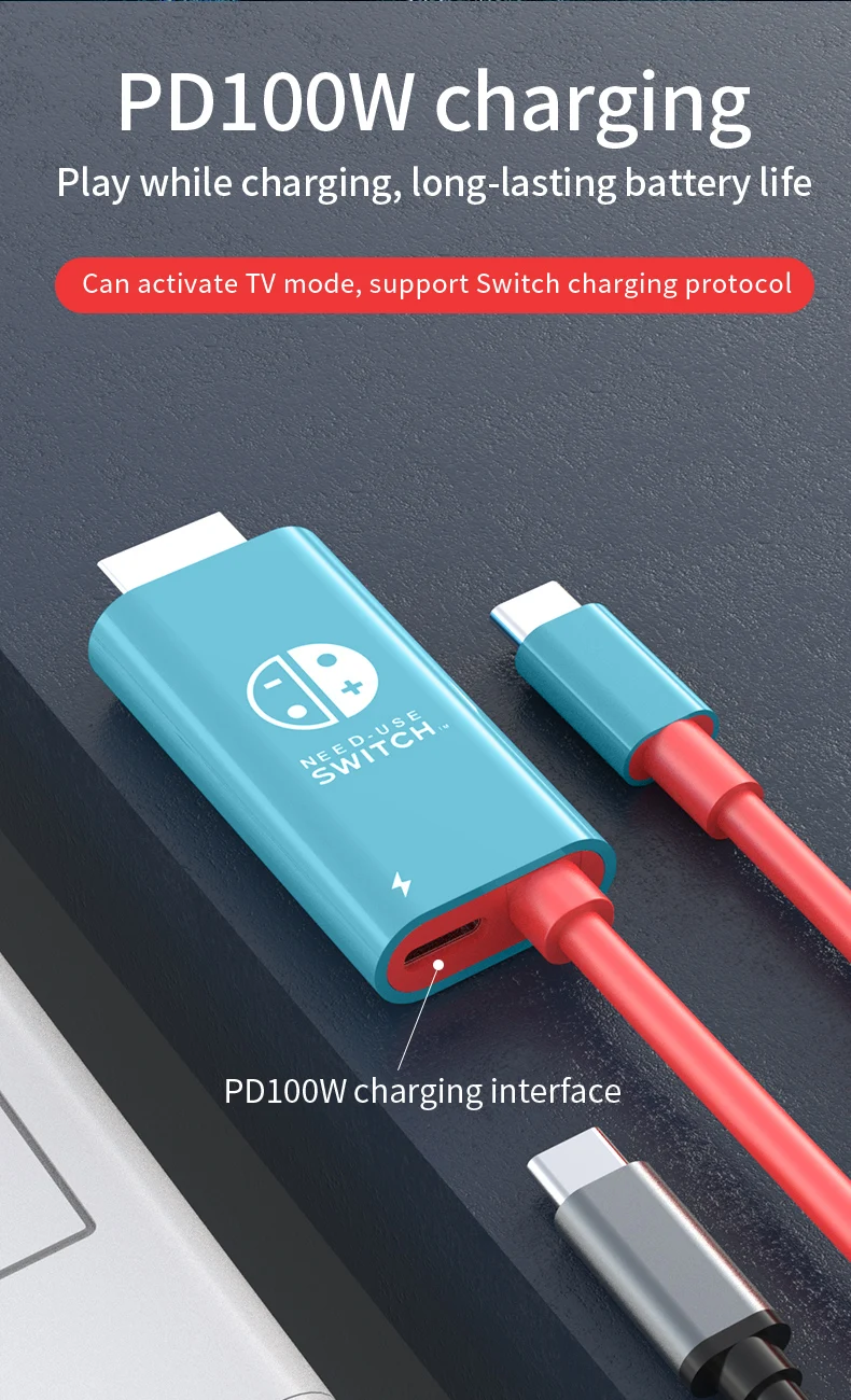 4K30Hz USB-C To HDMI+PD 100W Charging Cable, 2M/78.74In Plug & Play Type-C To HDTV Adapter For Switch,Laptop,Steam Deck