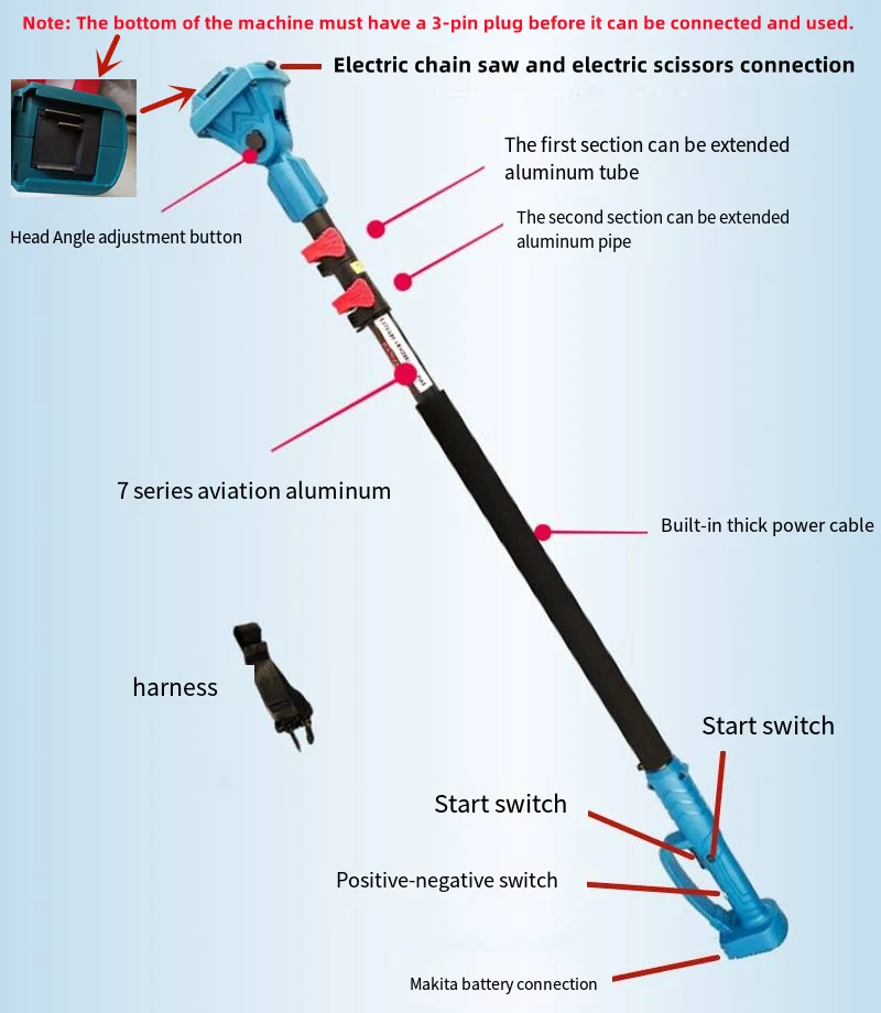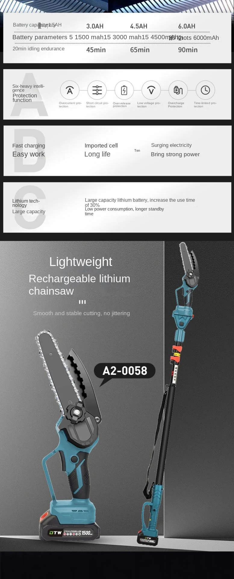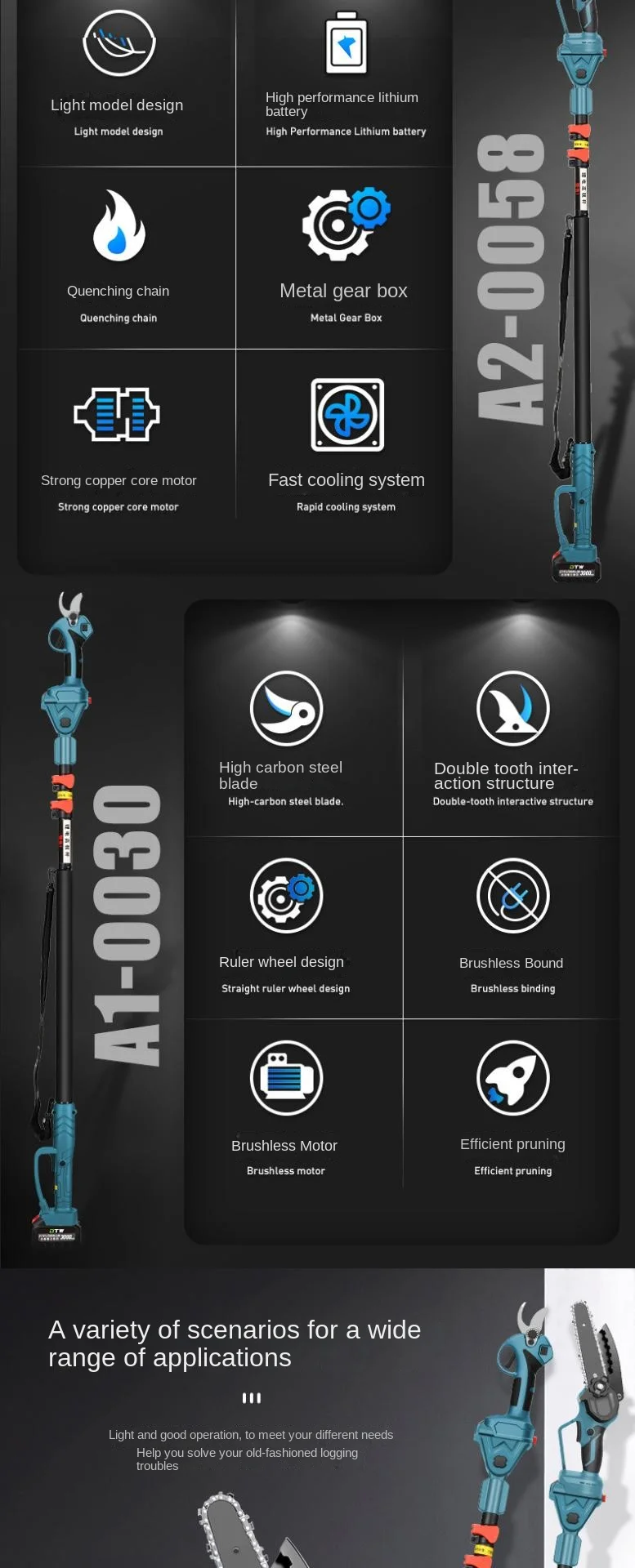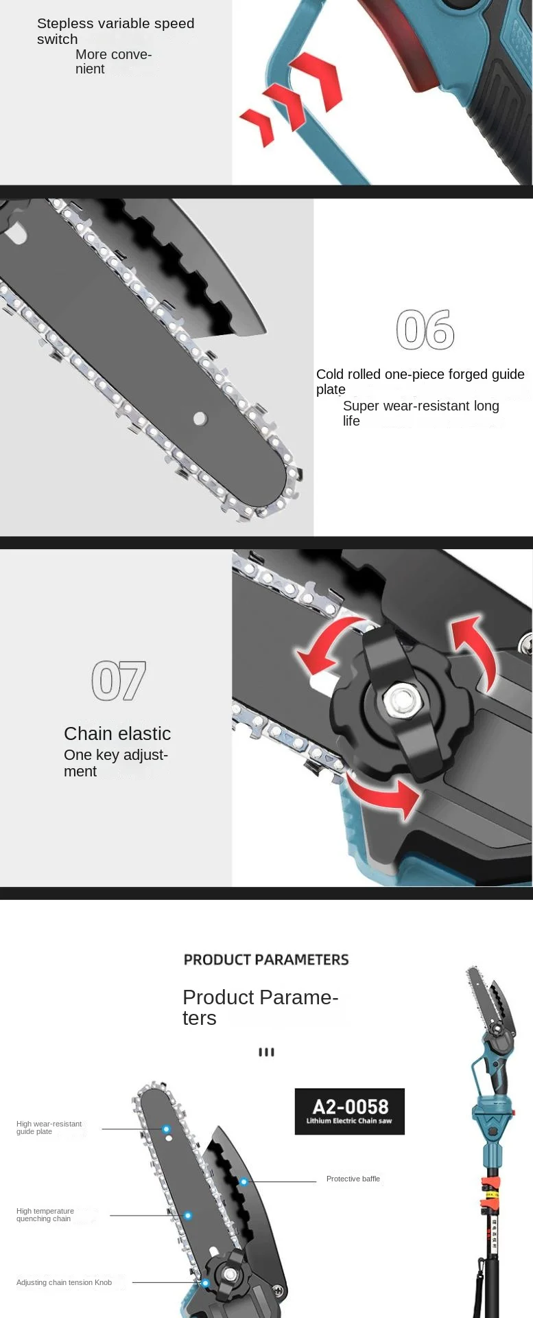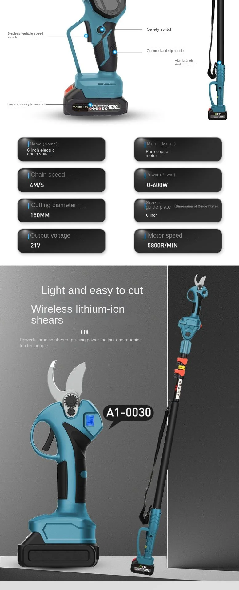 Lithium Battery Electric High Branch Saw Pruning Shears Telescopic Extension Pole 전기톱Makita Kettensäge Sierra Electrica Portatil