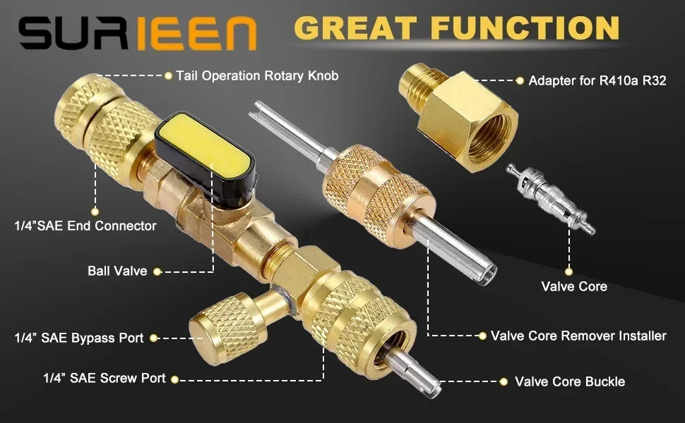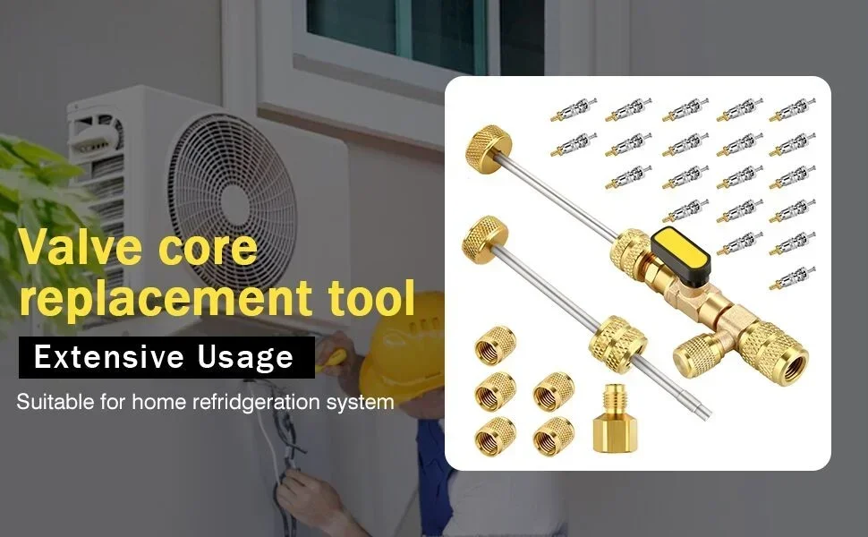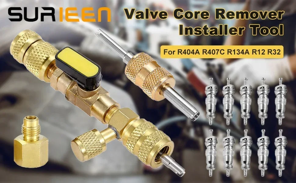 2022 R410A R22 Valve Core Remover Installer Tool with Dual Size 1/4 & 5/16 Port for R404A R407C R134A R12 R32 HVAC System