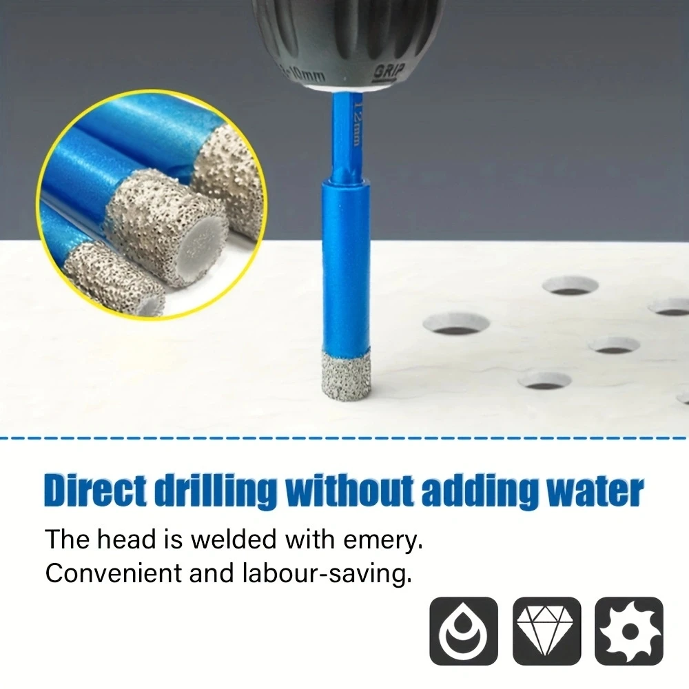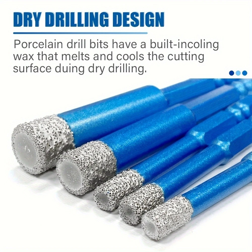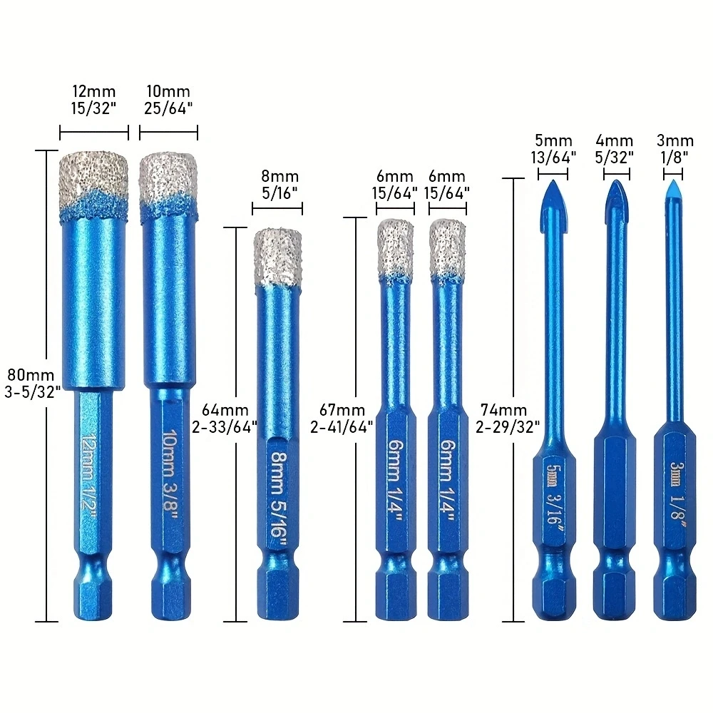 Diamond Core Drill Bits Set 8pcs Tile Hole Saws Vacuum Brazed Hole Saw with five Hex Shank and three triangular drills