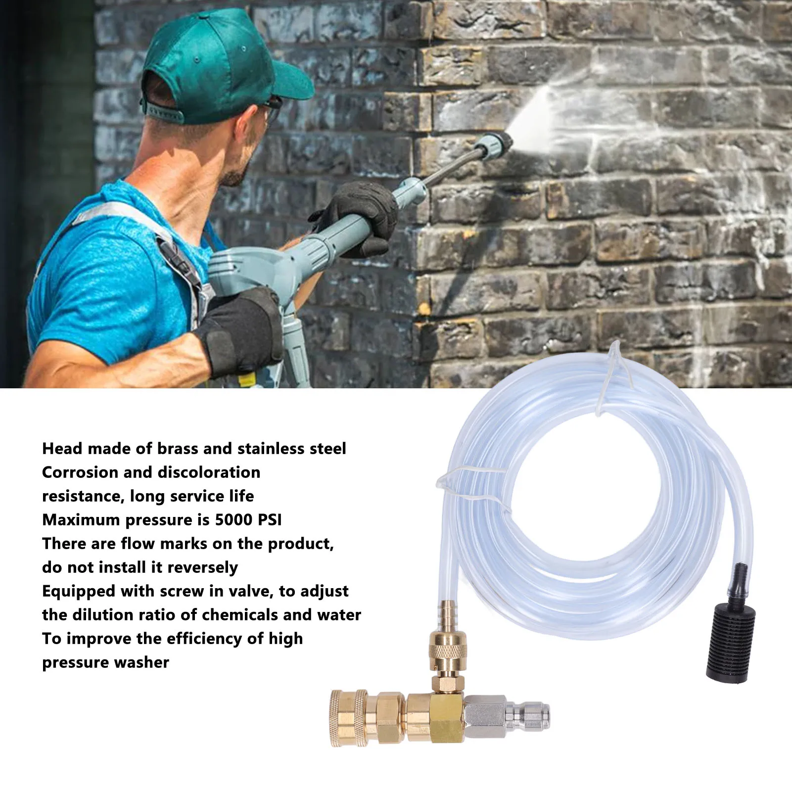 Chemical Injector Brass Stainless Adjustable Downstream Injector with 9.8ft Tube for Pressure Washer 5000PSI