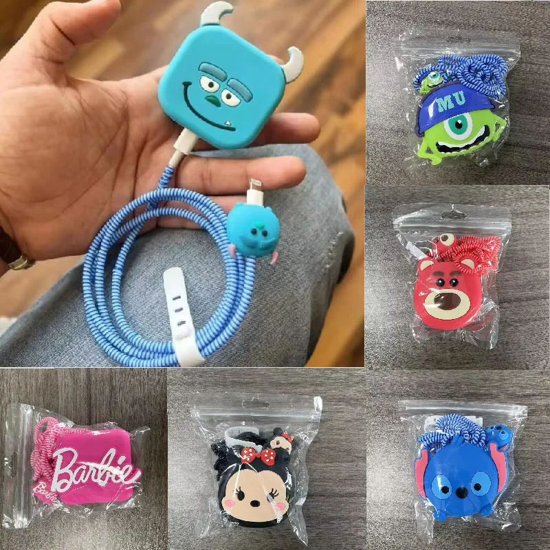 4Pcs/Set Cute 3D Cartoon Disney Stitch Cable Protector for UK HK Plug 20W Data Cable Protective Cover Phone Wire Cord Organizers