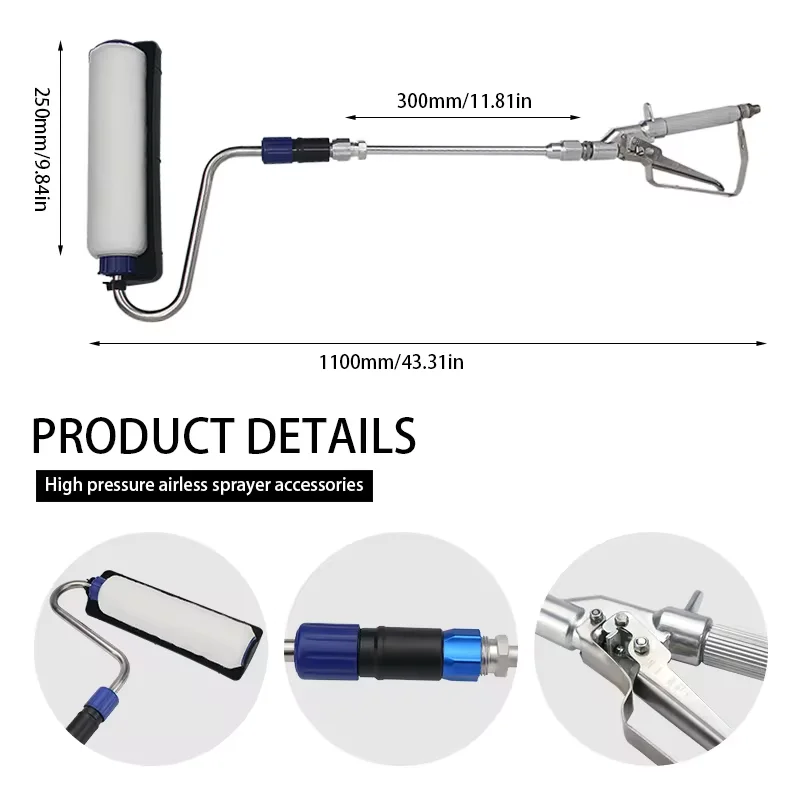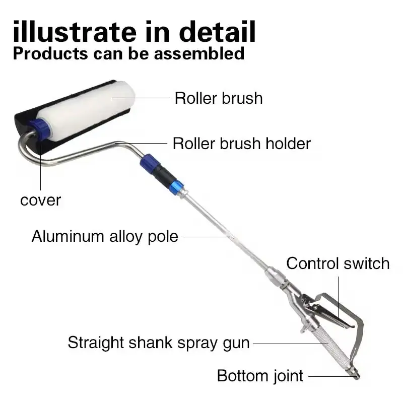【 Easy To Use】:Paint Roller kit connected to airless paint sprayers, it can automatically get the paint in, and evenly distribute paint on the roller cover, the roller cover has holes inside, so the paint can go through the roller cover to the wall, the pump is not included in this product.