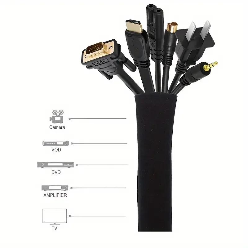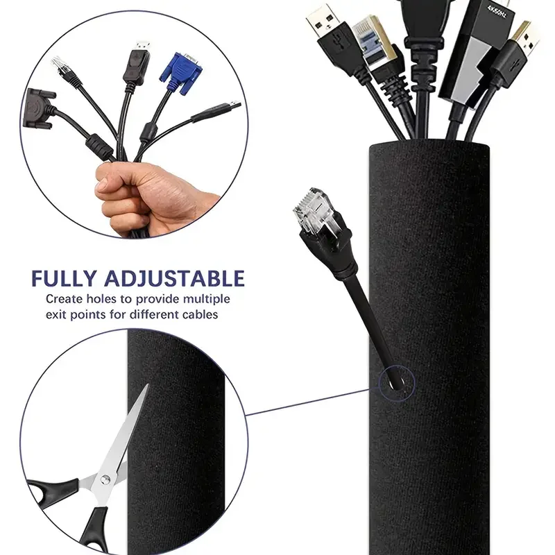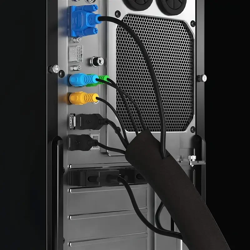 1 Cable Management Sleeve with Zipper - neatly organizes and protects cables. Easy to use, space-saving and durable