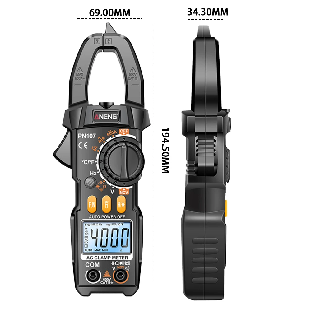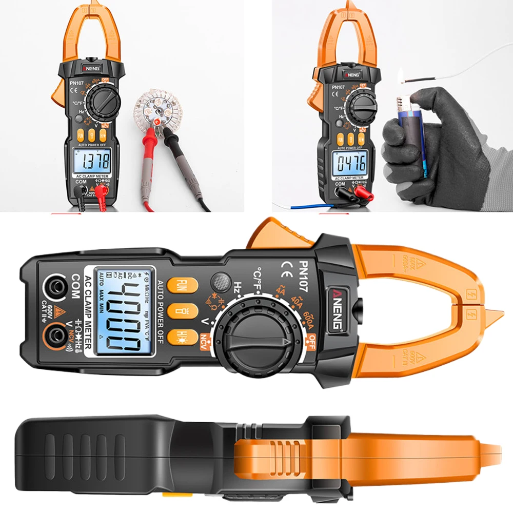 Digital Clamp Meter Voltmeter Ammeter  600A AC Current Tester NCV Multimeter AC/DC Voltage Multitester 4000 Counts Diode Temperature Frequency Ohm Capacitance Tester LCD Display Professional Electrician Tools