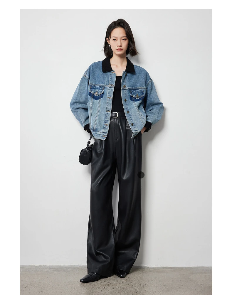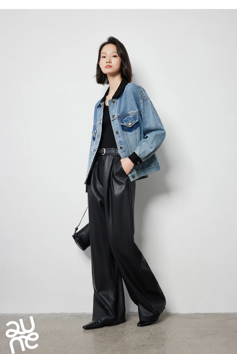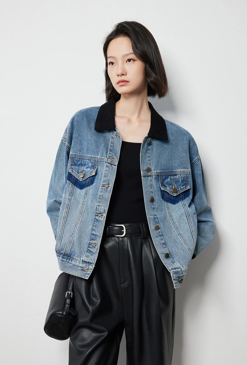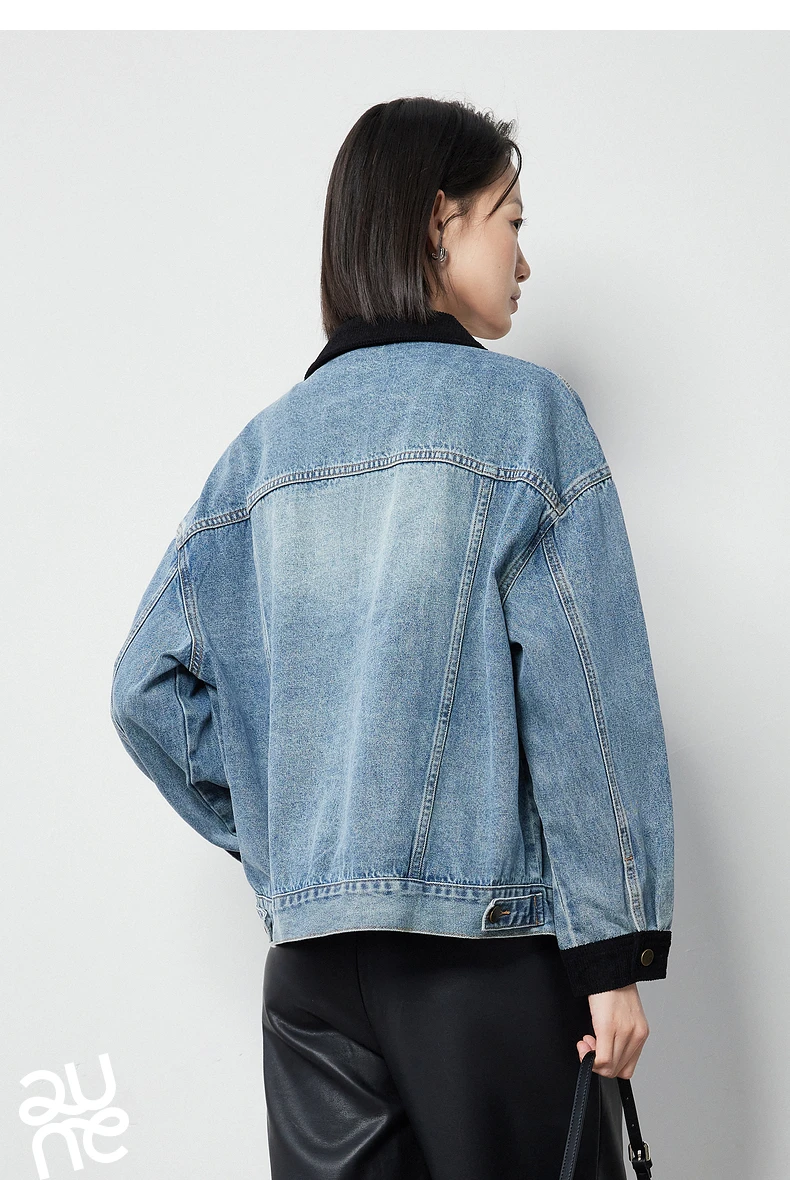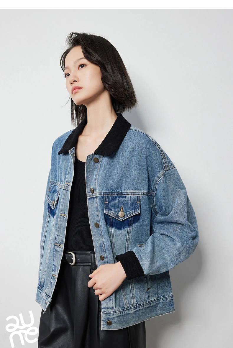 TOYOUTH Women Denim Jacket 2024 Autumn New Contrasting Color Washed Boyfriend Streetwear Outwear Jacket