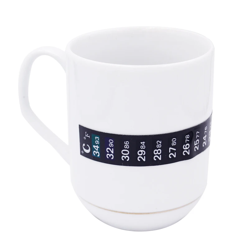 The thermometer changes its color according to the surrounding temperature. If the surrounding temperature is 27°C, then the background of scale mark 27°C will turn colorful and other scale marks remain black.