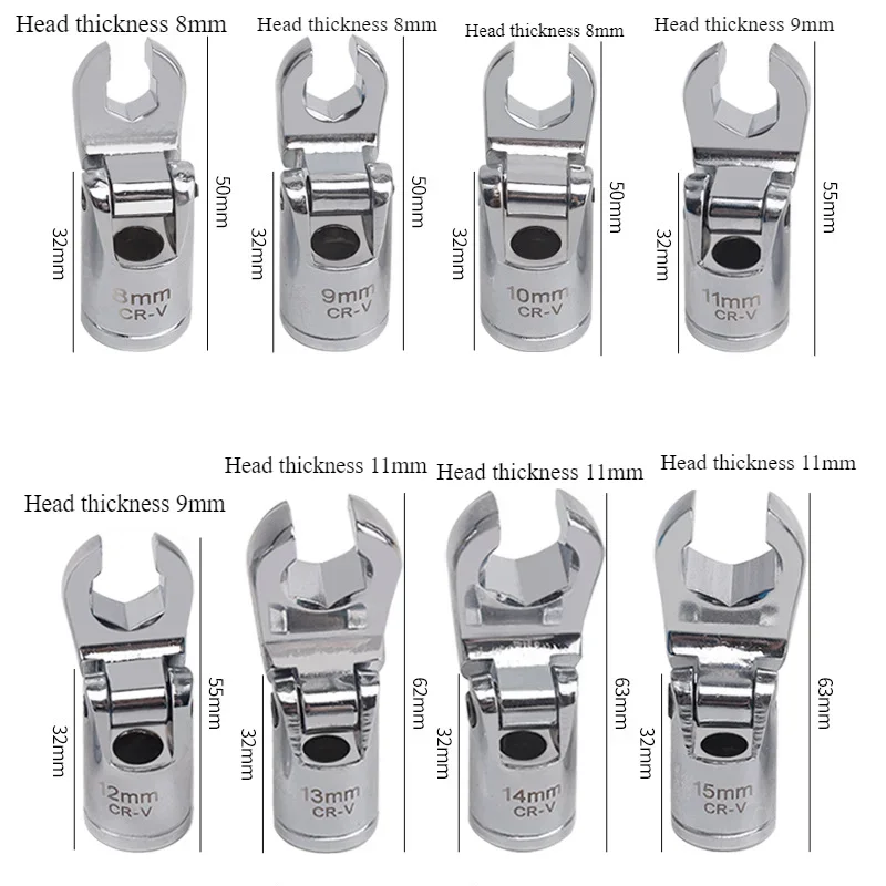 3/8″ Open Ring Wrench with Joint 12 Pcs Crows Foot Wrench Set Drive Flexible Metric Crows Foot Wrench Flare Nut Ratchet Bolt Big