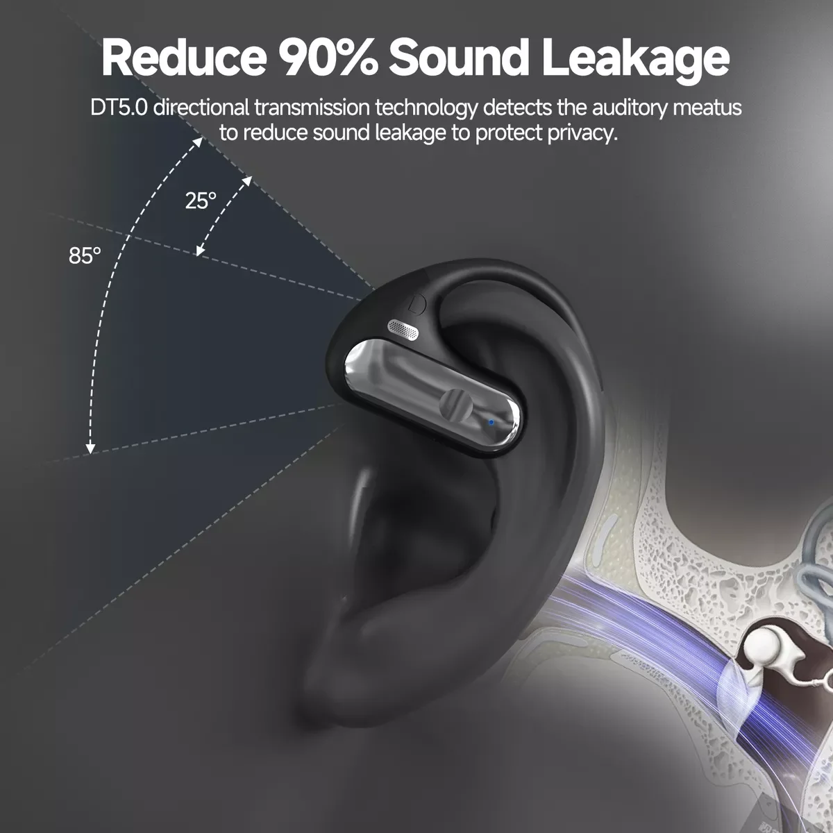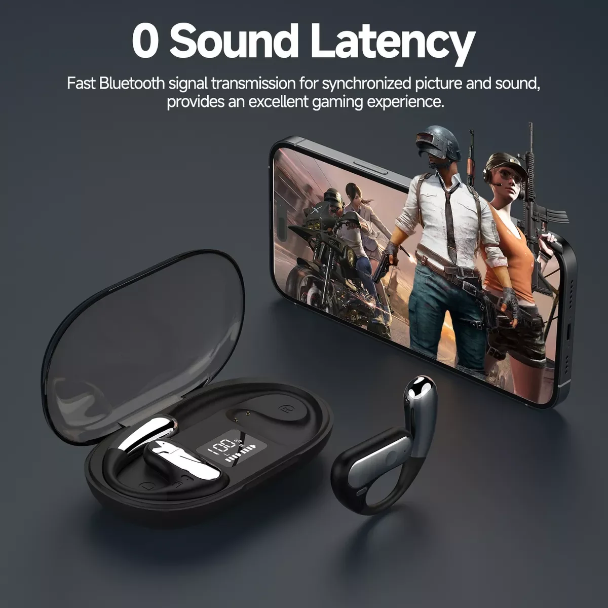 Qualidade de som estéreo: A tecnologia de transmissão de som direcional DT5.0 reduz com eficiência a perda de som para o meato auditivo. O alto-falante com bobinas de diafragma composto apresenta um som poderoso e envolvente, criando uma experiência de áudio Hi-Fi natural como nunca antes. Você pode desfrutar de bate-papos de voz sincronizados enquanto joga com latência zero.