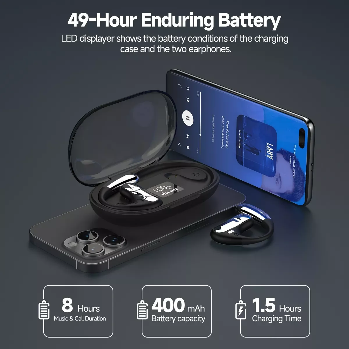 Estojo de carregamento de grande capacidade: Nosso estojo de carregamento com uma poderosa bateria de 400mAh oferece 49 horas de duração da bateria ou 8 horas de reprodução de música ininterrupta. O display LED inteligente mostra a carga da bateria do case e dos fones de ouvido sem fio, garantindo que você nunca fique sem energia inesperadamente.