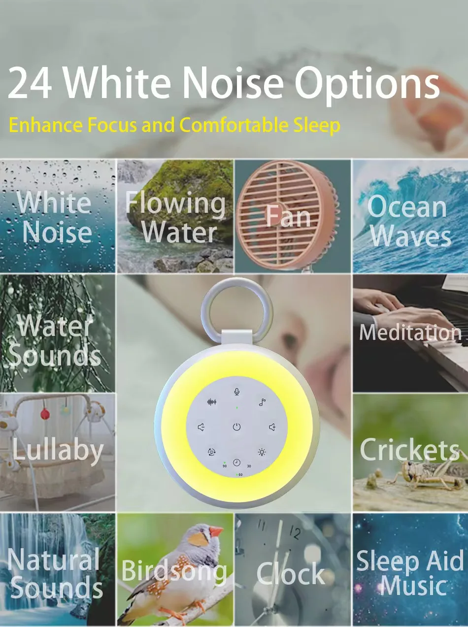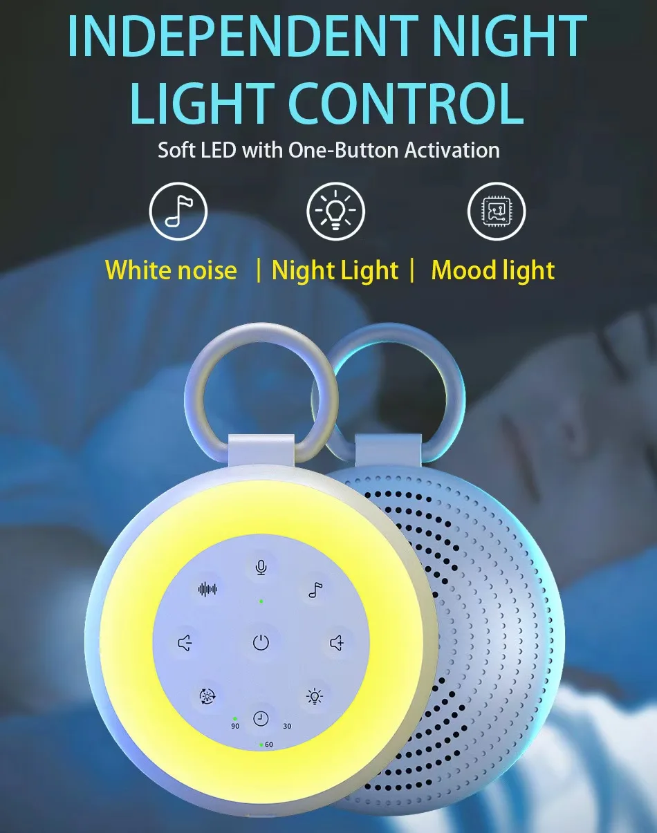 Portable Baby Sound Machine with 24 Sounds Wireless Speaker Recording Function Kid's White Noise Sound Machine with Night Light