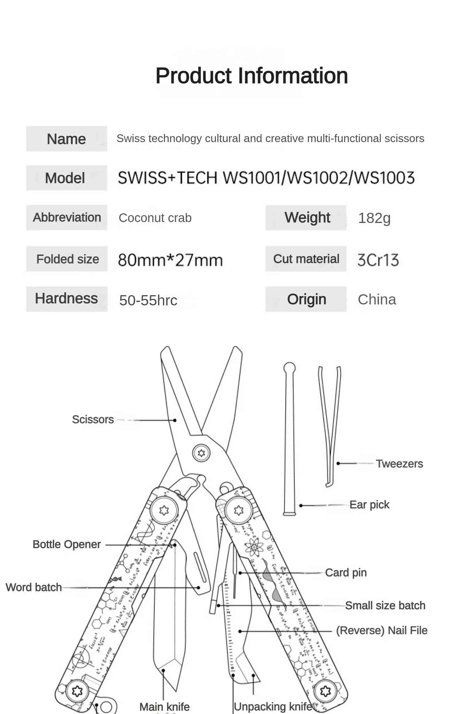 Swiss Tech Mini Multi-Function Knife Pocket Folding Knife Stainless Steel Aluminum Alloy Scissors Corrosion Resistance Knife