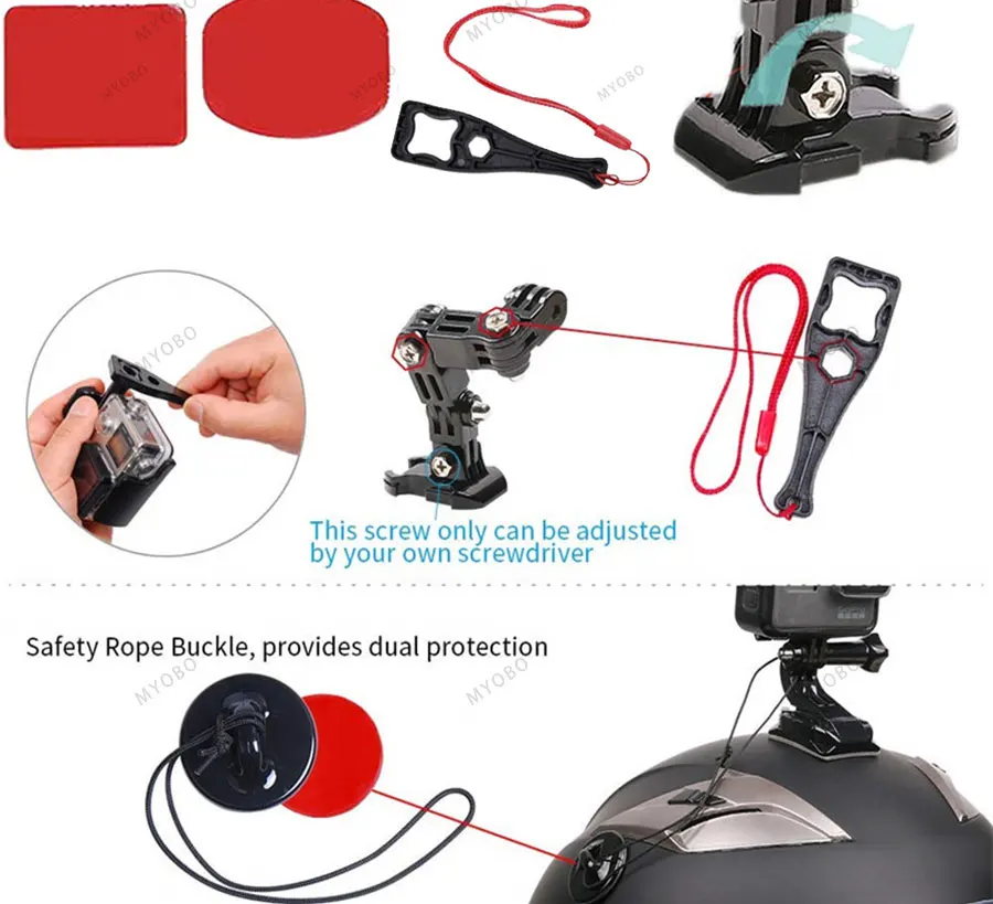 【BETTER FOR MOTORCYCLE RIDING】A great piece of equipment at a very decent price, suitable for motorcycle riding with action camera. Set your GoPro in any placements of helmet(chin of helmet, side of helmet or top of helmet) to take video when you riding. It’s not straps onto the Helmet, so it will not preventing the visor to close and blocks the air inlet on the front of the helmet