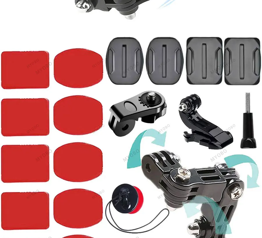 【HELMET CHIN MOUNT】Made up of 4 joints and connected by screw, every joint can be rotated 180 degree, allows you to place the camera right where it needs to be.You can combine the J-hook mount with a curved mount to use it on the helmet or combine it with a flat mount to use it on ski/skate/surfboards, kayak and so on.