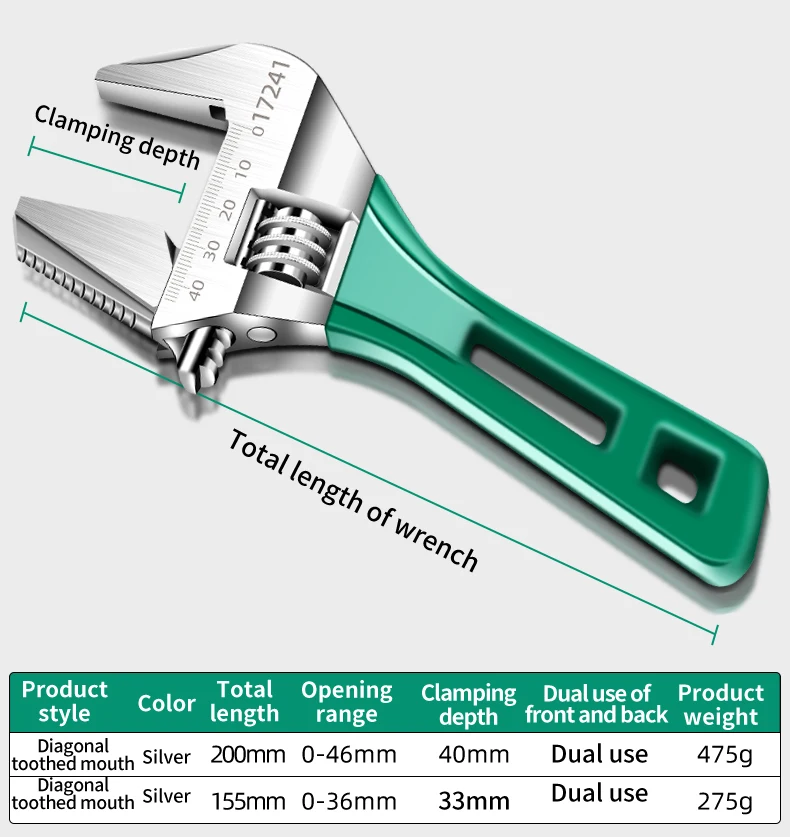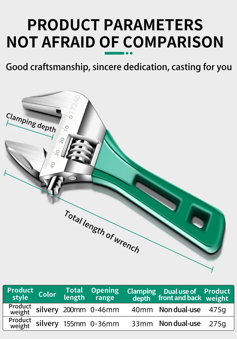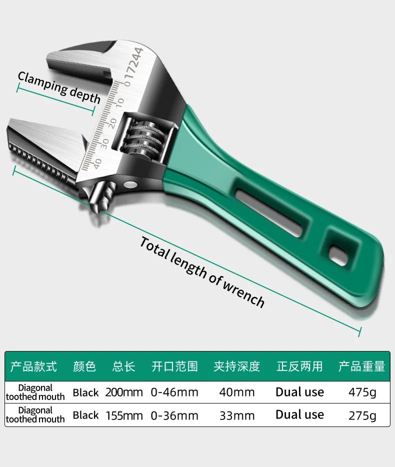 Multifunctional Large Opening Adjustable Spanner Monkey Wrench Adjustable Angle Slide Wrench 6-8 Inch Household Tools