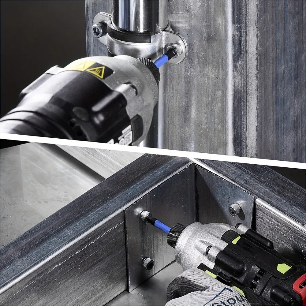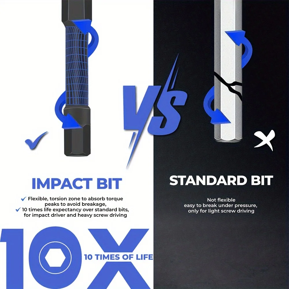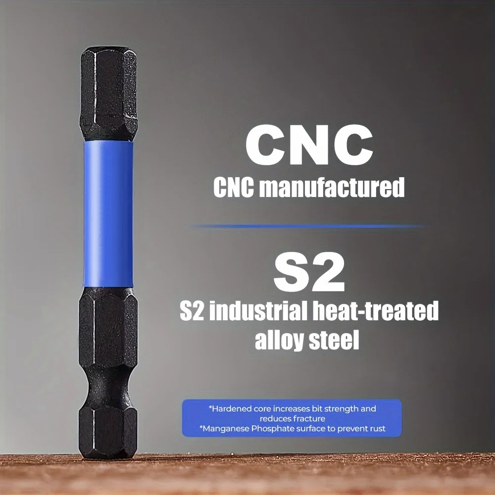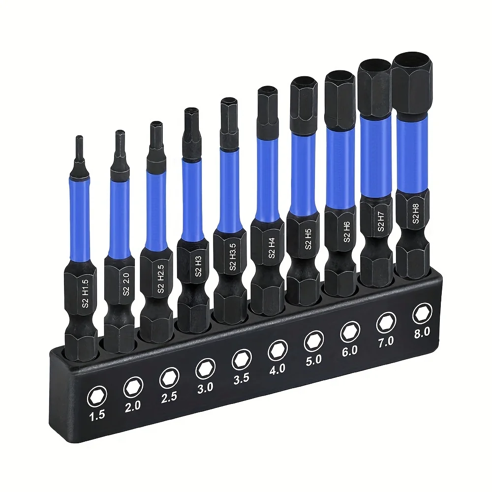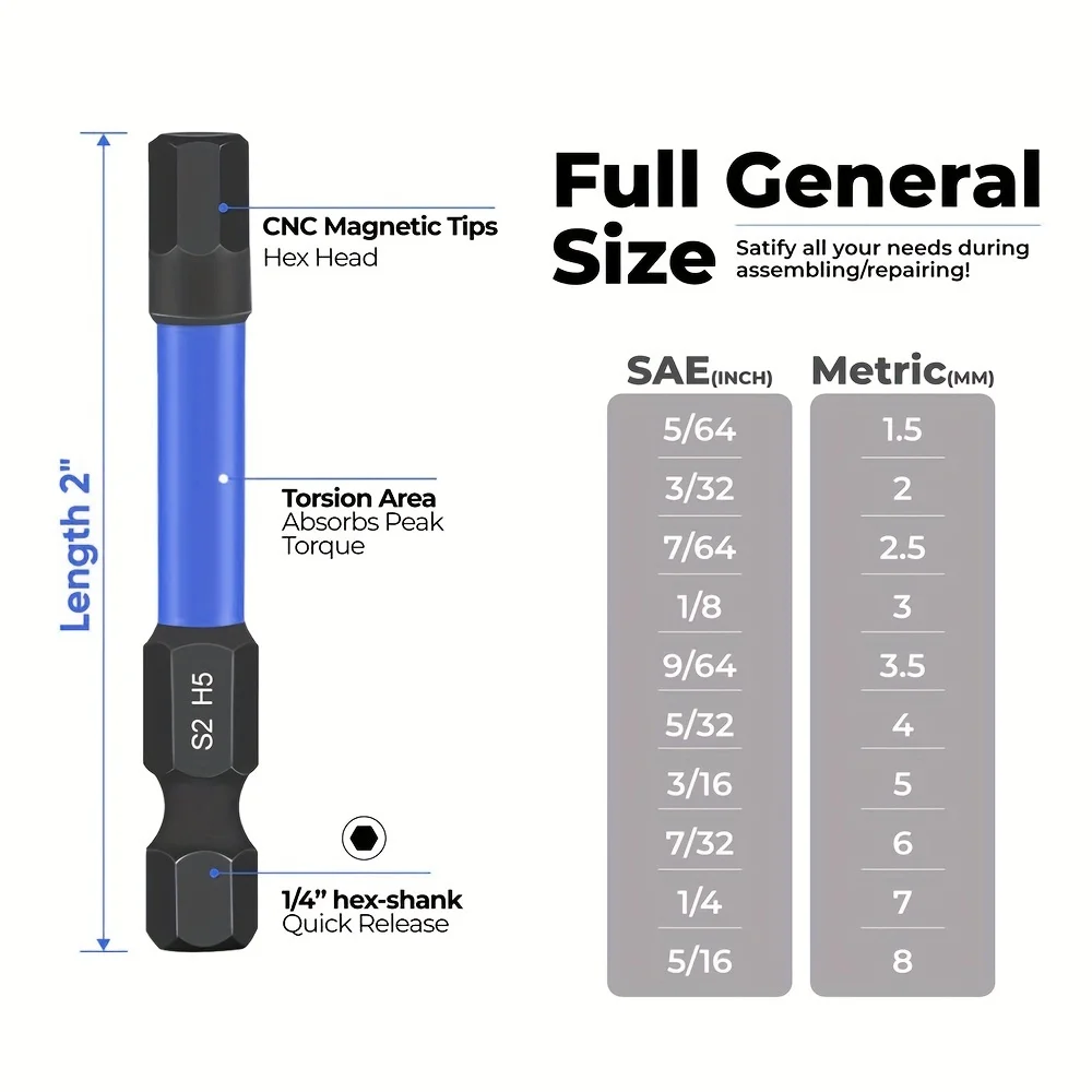 Impact Hex Head Allen Wrench Drill Bit Set 10pcs (SAE), 1/4" Hex-Shank S2 Steel Hex Bits Set, CNC Machined Tips With Magnetism