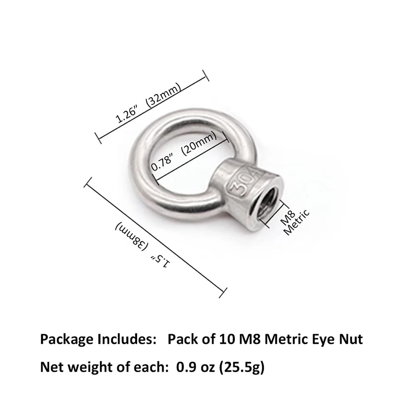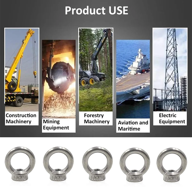 1.Package Content: 10pcs x M6/M8/M10 Ring lifting Nuts. Metric Ring Shape Lifting Eye Nut is a standard metric standard coarse pitch.