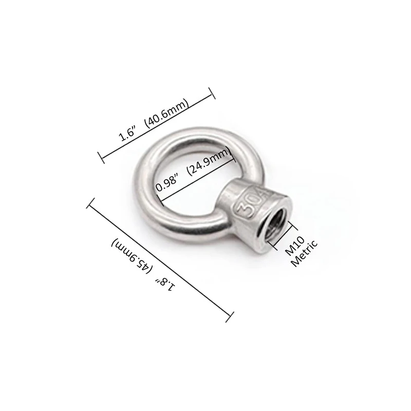 2.The standard used by our Ring Shape Lifting Eye Nut is the Metric Units standard. The screw that needs to be matched also needs to be in metric units. M10 is basically equal to 3/8 inch, but it may not compatible with a standard 3/8 thread bolt. The thread are always the coarse thread.
