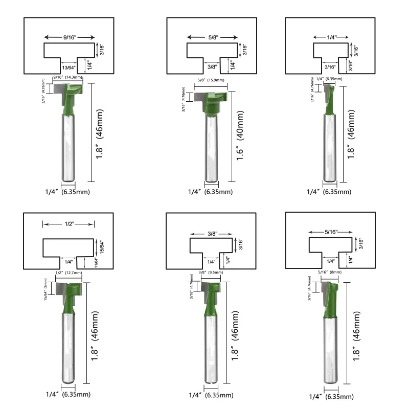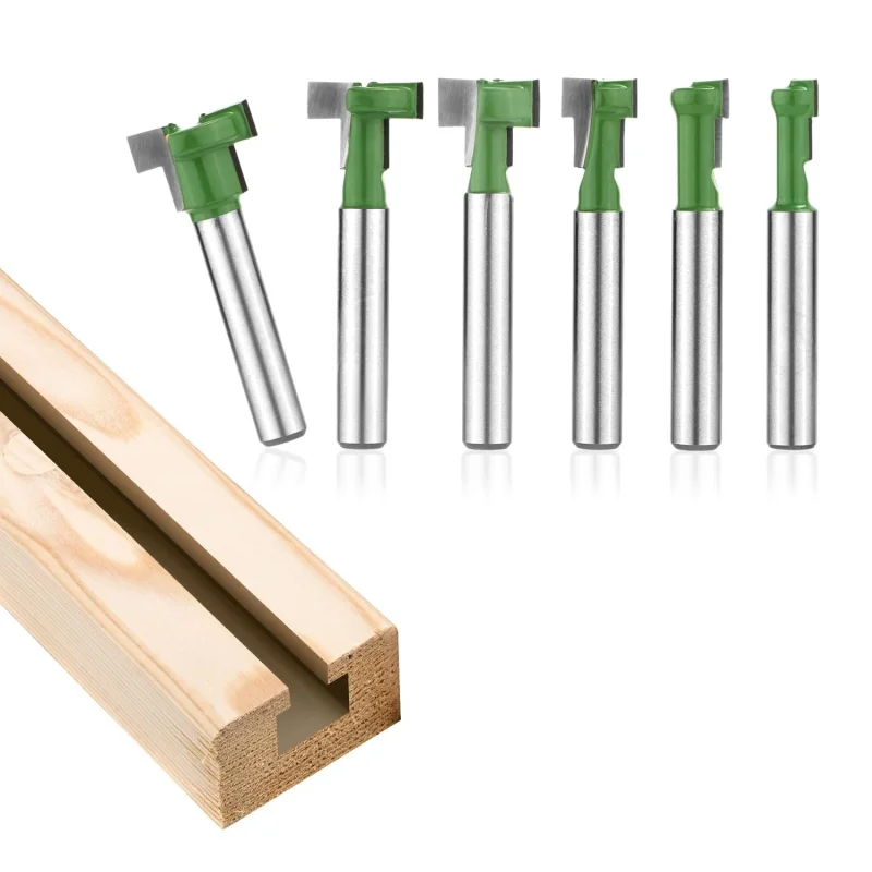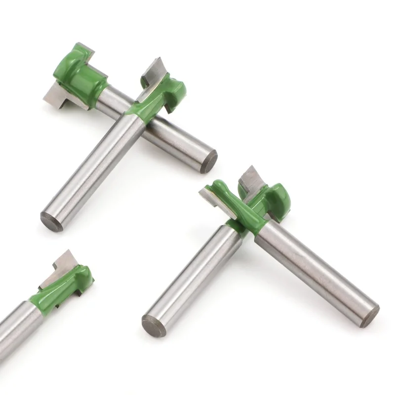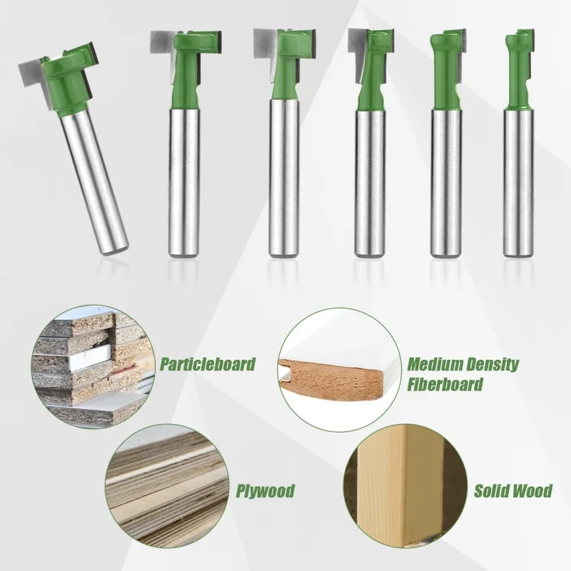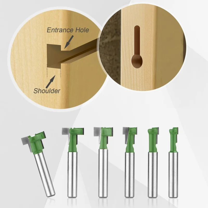 6-Piece Premium T-Slot and Lock Hole Router Bit Set - Precision woodworking milling tools for efficient cutting and drilling - D