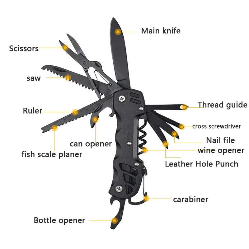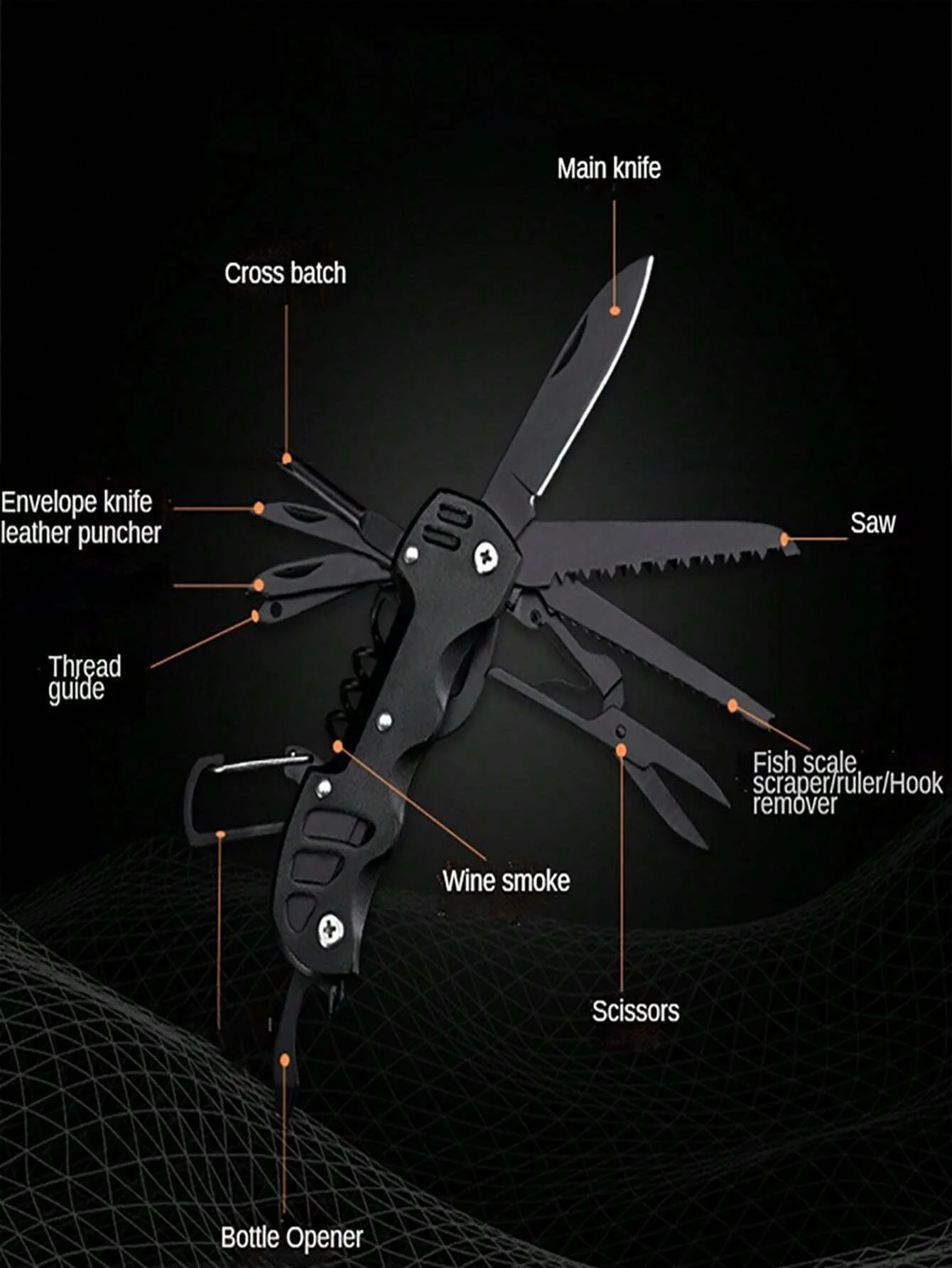 Multi-Functional Camping Survival Knife, A Unique Gift For Men, Such As Father And Husband, 12-In-1 Swiss Knife, Stainless Steel