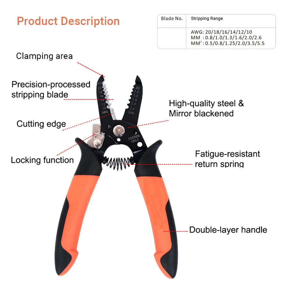 Handle Wire Stripping Pliers Crimper Cable Cutter Pliers Double layer Fine Grinding Wire Clamping Pliers Fine Grinding Stripping