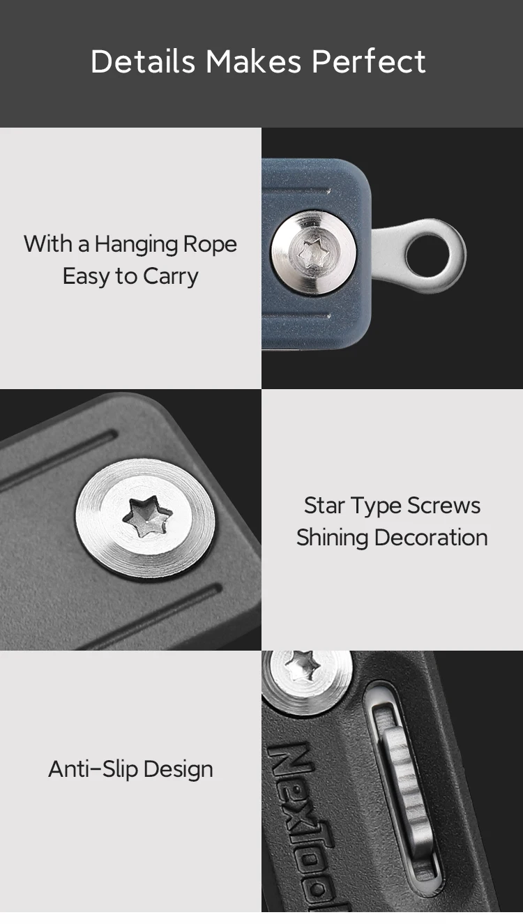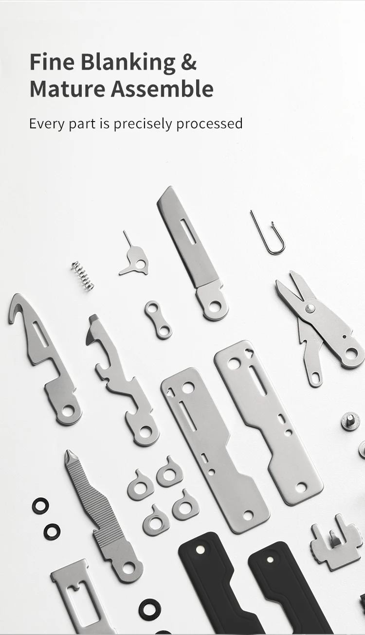2.Multi functional integration: It integrates tools such as small knives, scissors, nail files, and flathead screwdrivers, which can meet various daily needs, such as cutting fruits, cutting, handling clothing threads, and temporarily tightening screws.