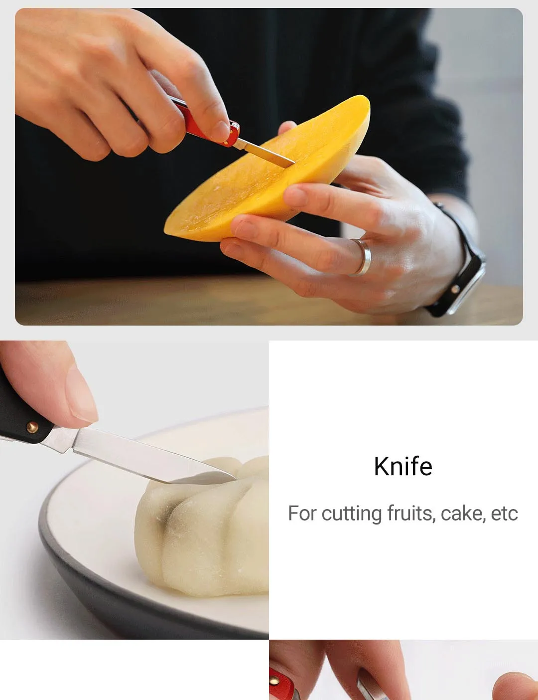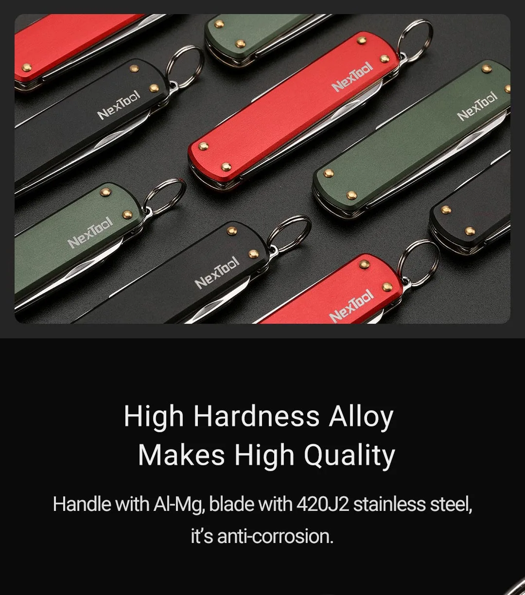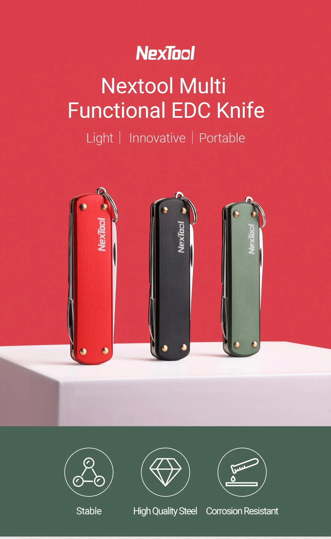 Functiion: Scissor, Nail File, Flat-head screw driver, Key ring, and knife