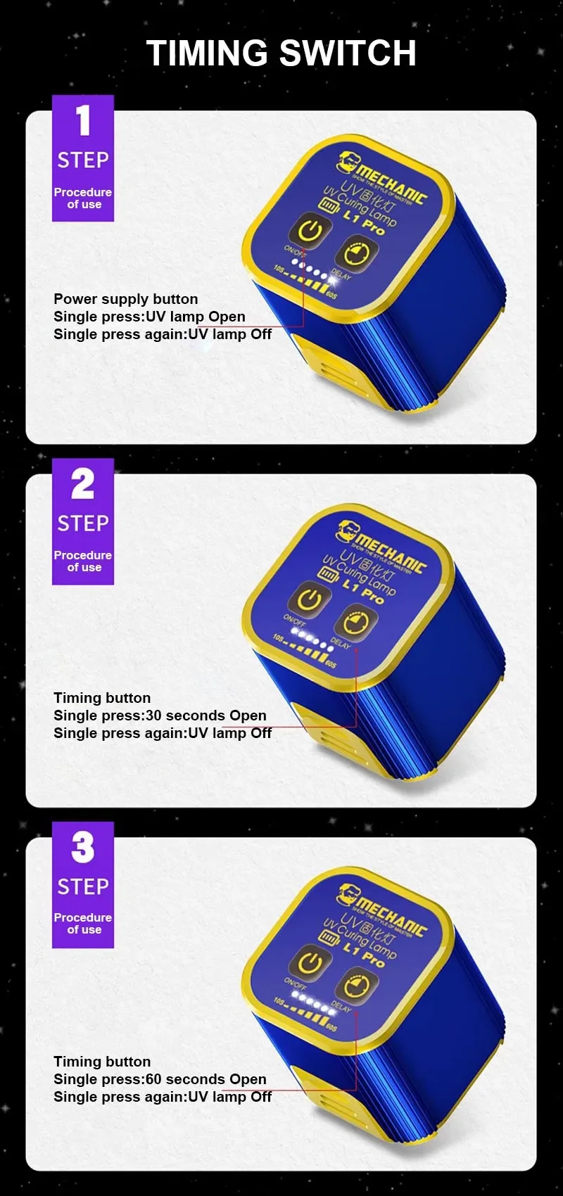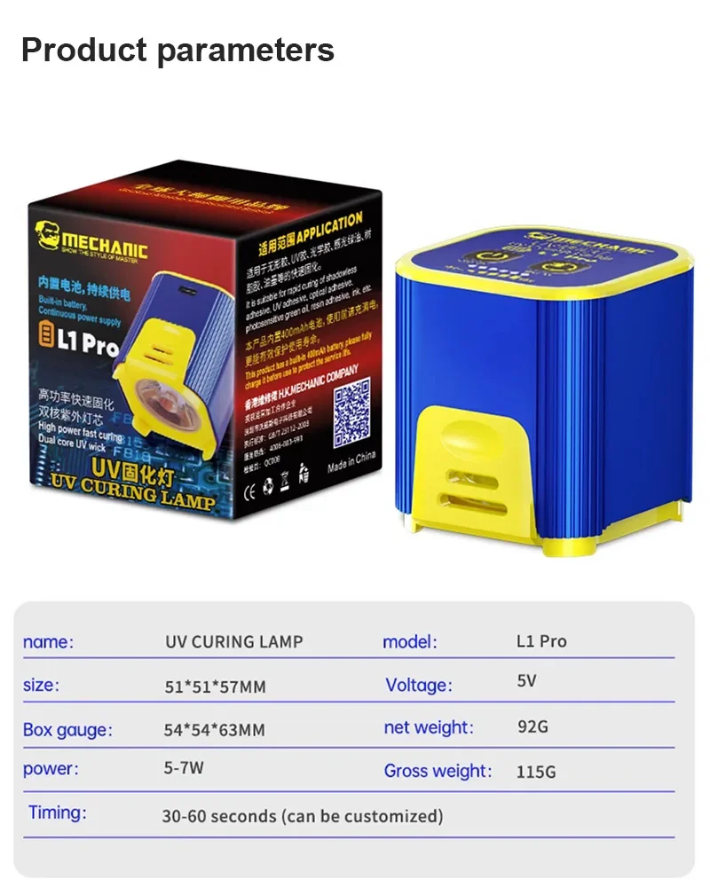 5in1 MECHANIC L1 Pro UV Curing Lamp UV Curing Solder Mask Ink Soldering Paste Weld Flux for Motherboard Welding Repair