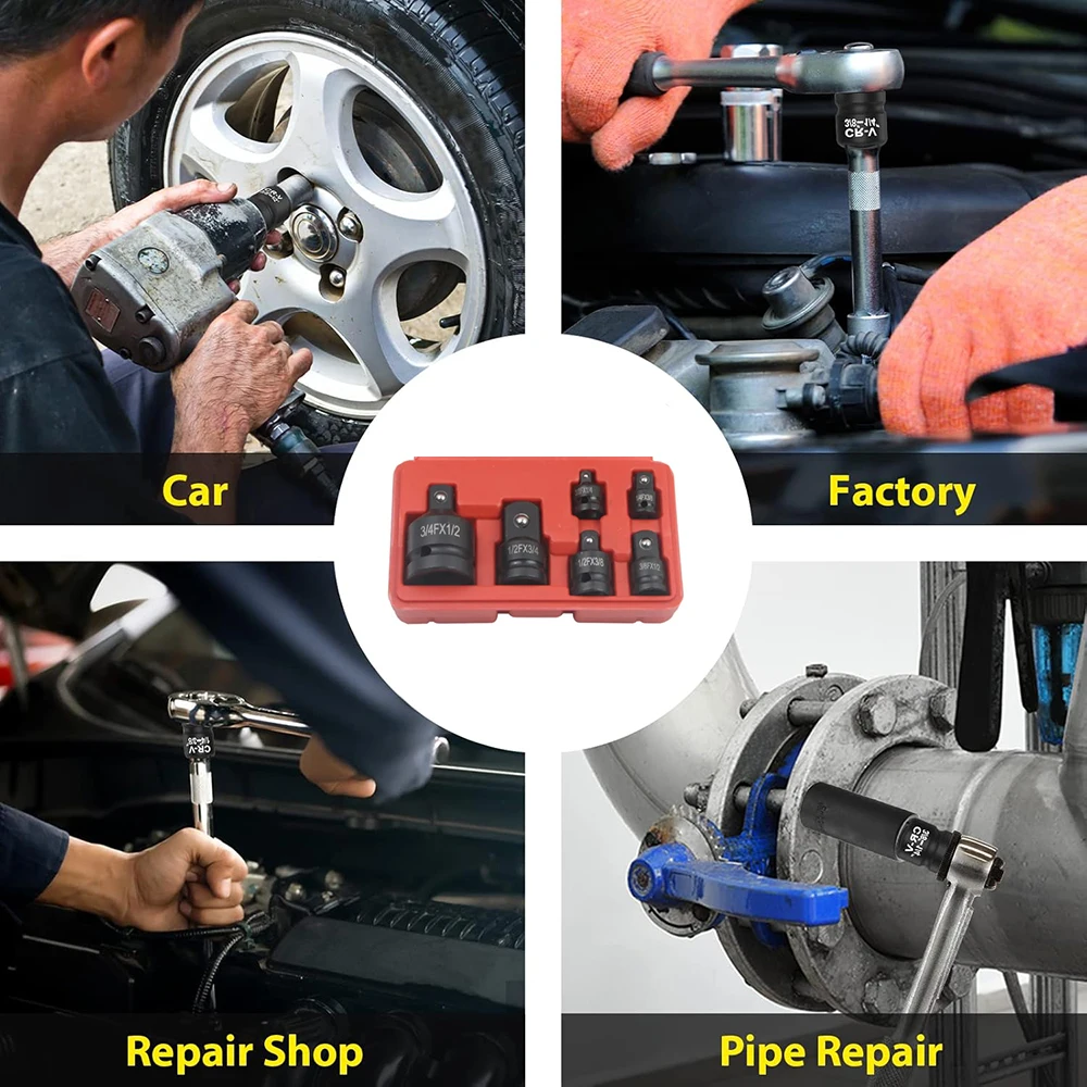 6pcs Impact Socket Adapter Set 1/4 1/2 3/8 3/4 Reducer Adapter Impact Driver Wrench Conversion Kit For Auto Bike Mechanic tools