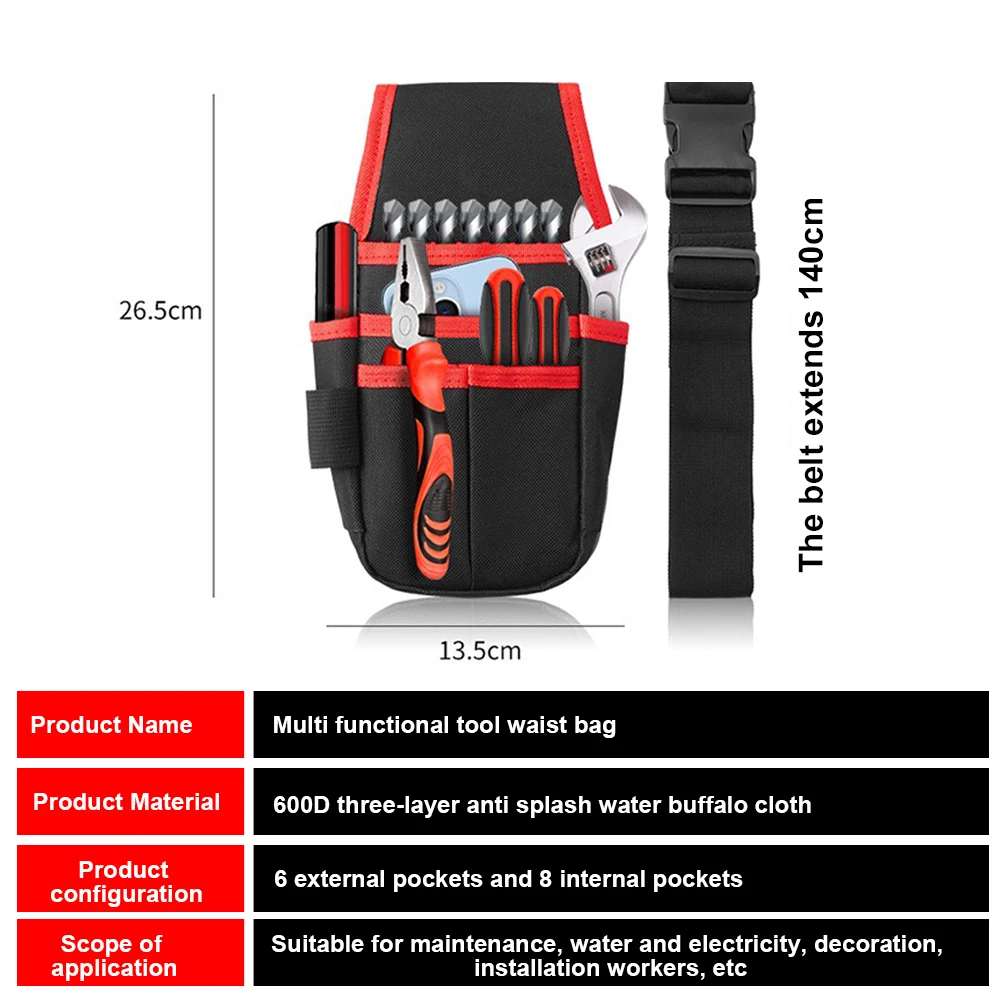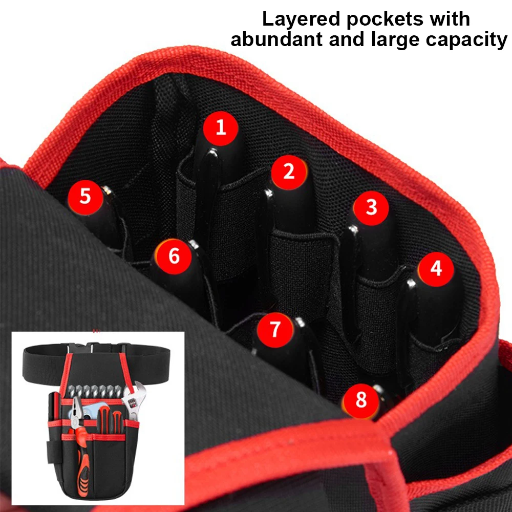<< Enough carry space: This tool belt provides enough pockets for all your tools.can hold anything from wrenches, strippers, and vise grips, to screws, markers and hammers and more.