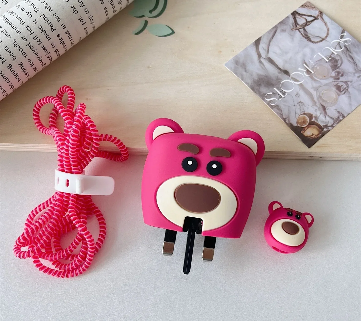 New Charger Protective Cover for Samsung UK Plug 25W Charging Head Protective Cover Cartoon Data Cable Cable Winder