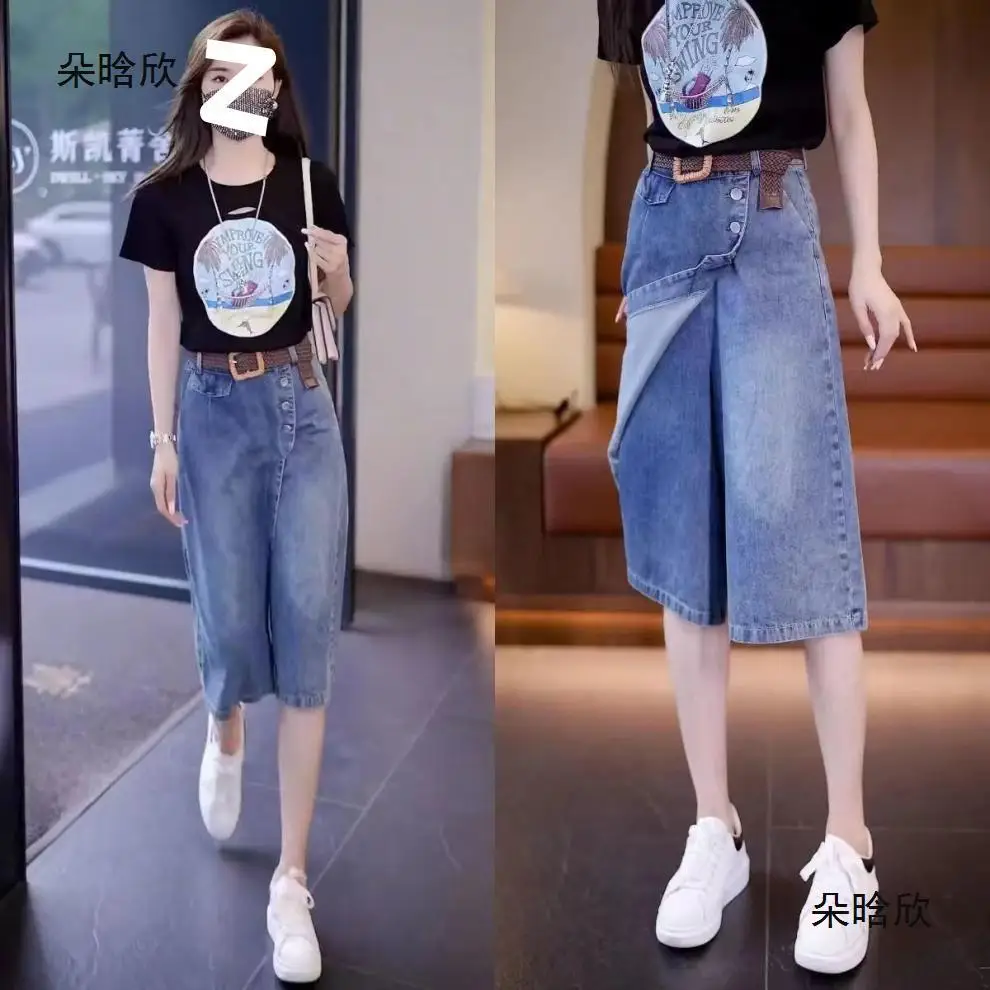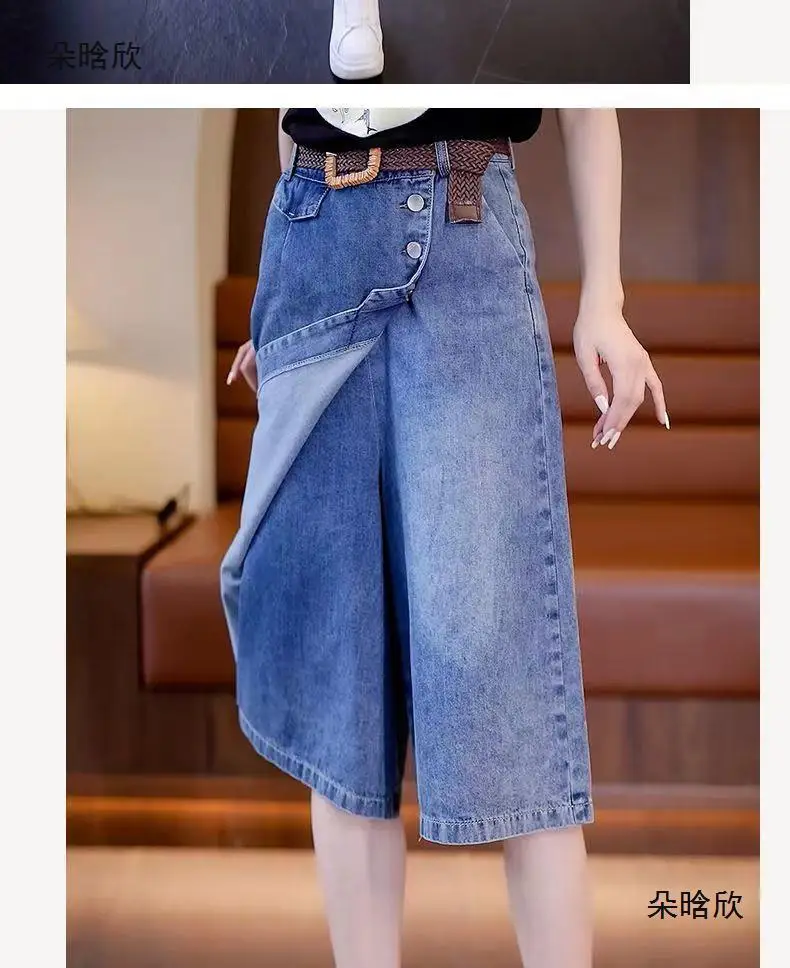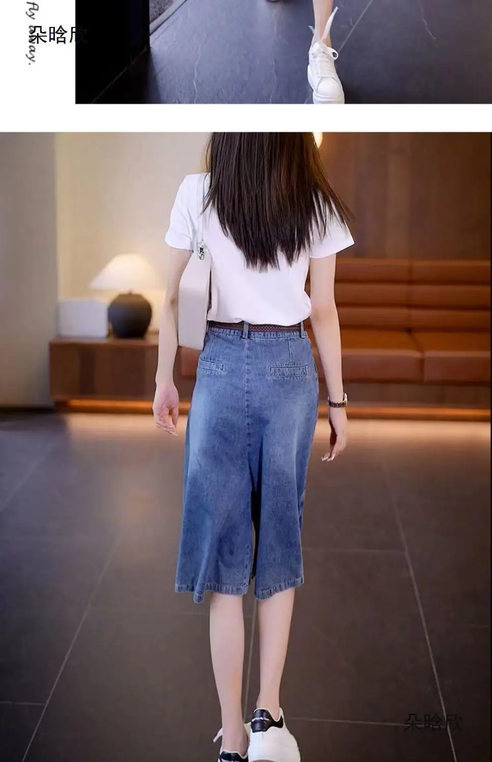 Women Summer Midi Shorts Skirt Hip Zipper Button Pockets Vintage Leather Casual Elegant Party Fashion Casual Denim Skirts