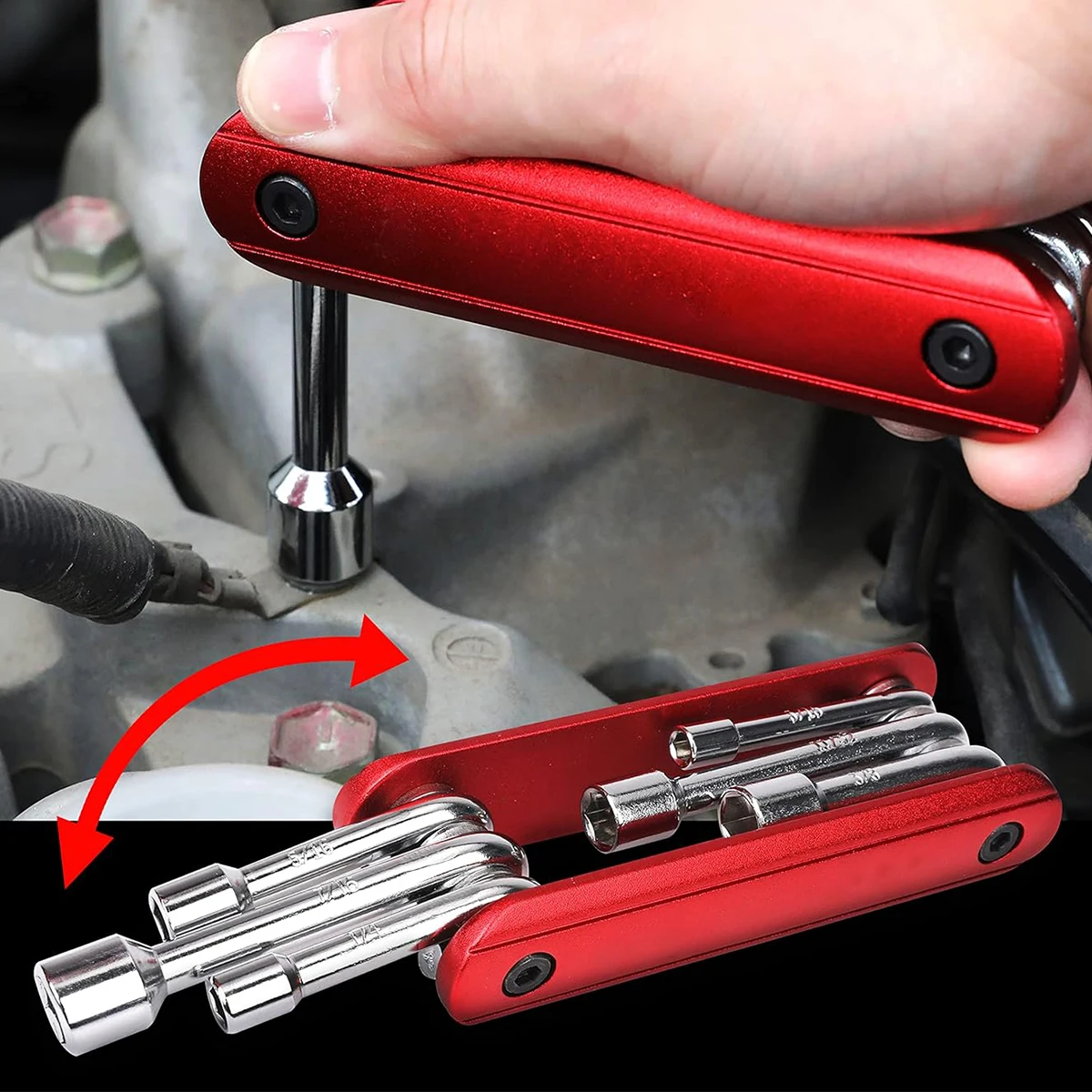 6 in 1 Folding Nut Driver Set Imperial/Metric,Hex Nut Driver Set,Folding Socket Wrench,Steel Shank Portable Premium Handle