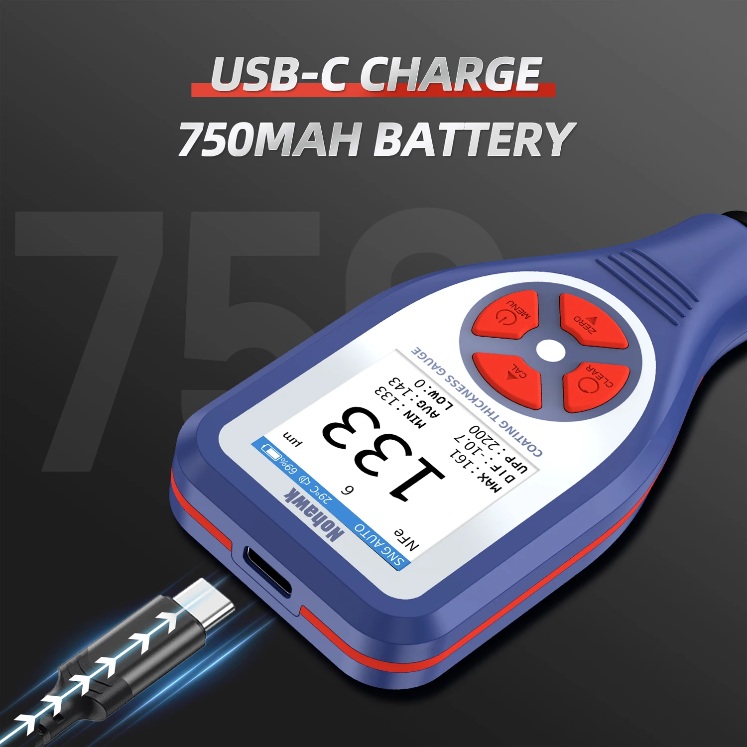 Nohawk New Mini High Accuracy Automotive Coating Thickness Gauge With Color LCD Display, Measures Fe/NFe Car Coating Thickness In Mil/um/mm,USB-C Charging,Suitable For Used Car Appraisals