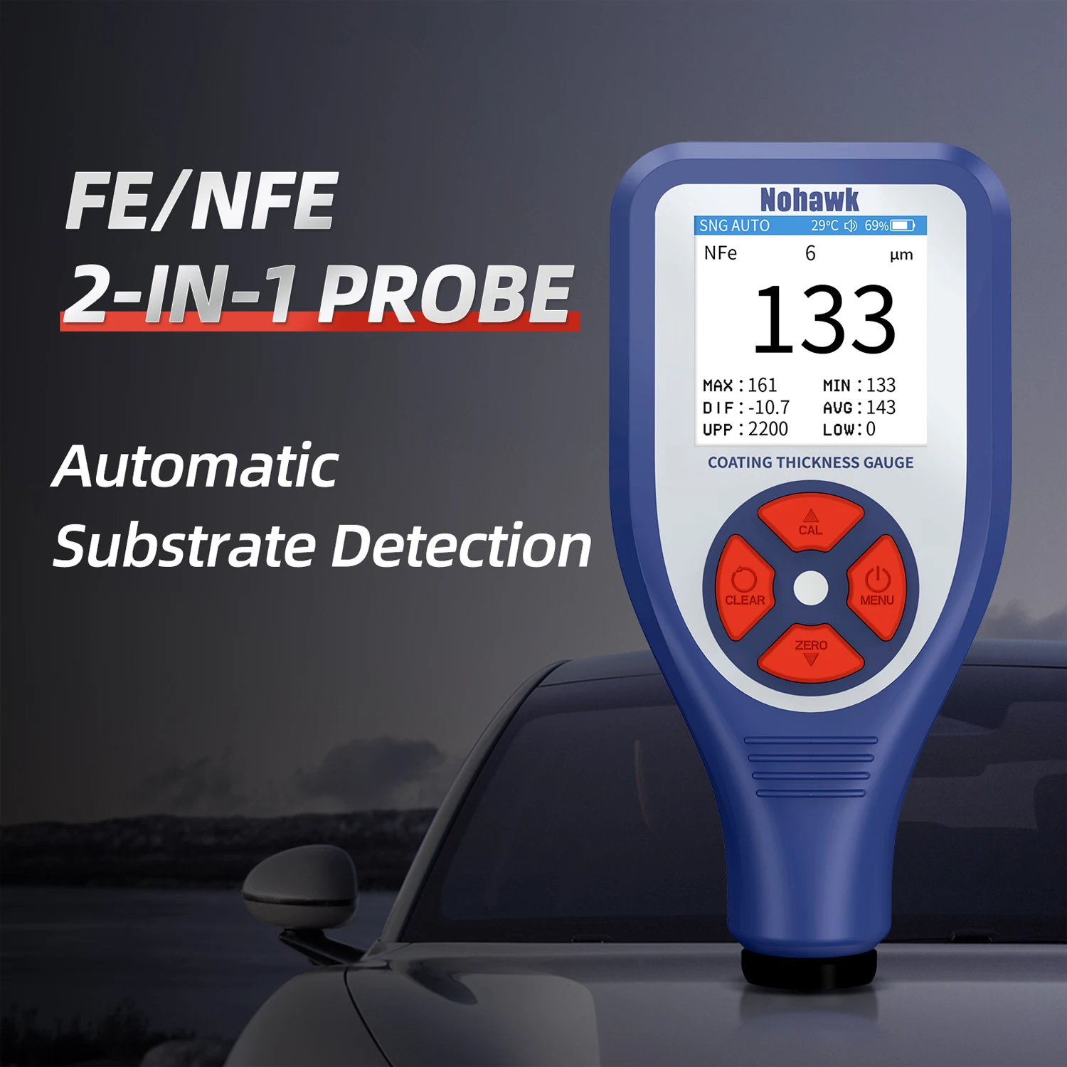 Nohawk New Mini Digital Automotive Coating Thickness Gauge Measures Fe/NFe Car Coating Thickness Suitable For Used Car Appraisal