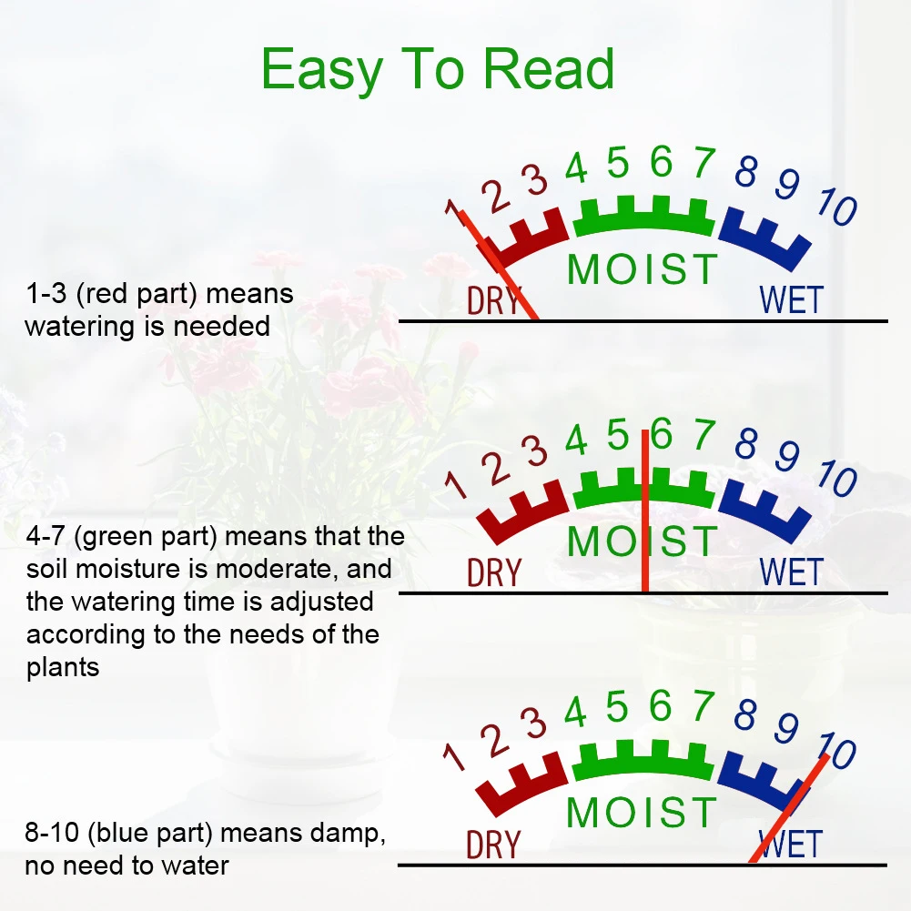 Mini Portable Hygrometer Tester Soil Moisture Temperature Meter Detector Garden Plant Flower Potted Soil Analyzer Tool Specification: Material: Plastic + Metal Size: 145*35*30mm Observation: 1-3 (red part) means watering is needed, 4-7 (green part) means soil moisture is moderate, watering time can be adjusted according to plant needs, 8-10 (blue part) means wet and no watering is required . Suitable for plantations, gardens, indoor potted plants, etc. Only suitable for soil, do not use for liquids.