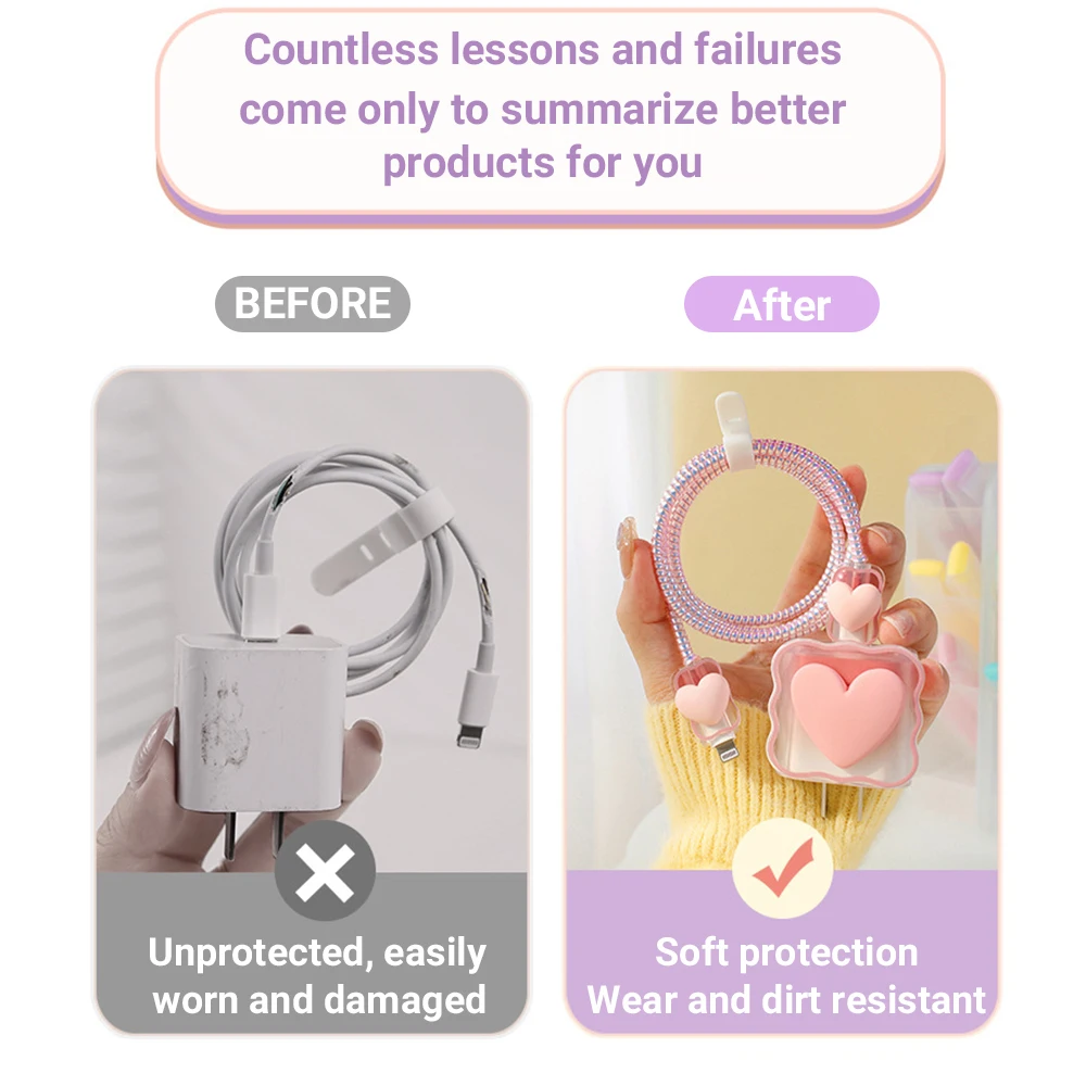 Cute Cartoon Transparent Cat Charger Protective Cover For Apple iPhone 15 14 13 12 11 Charger 18W 20W US Data Cable Protector
