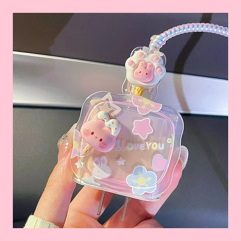 Cute Rabbit Silicone Charger Protector For Apple iPhone 18W 20W US Data Wire Winder For iPhone 15 14 13 12 11 Cable Protectors