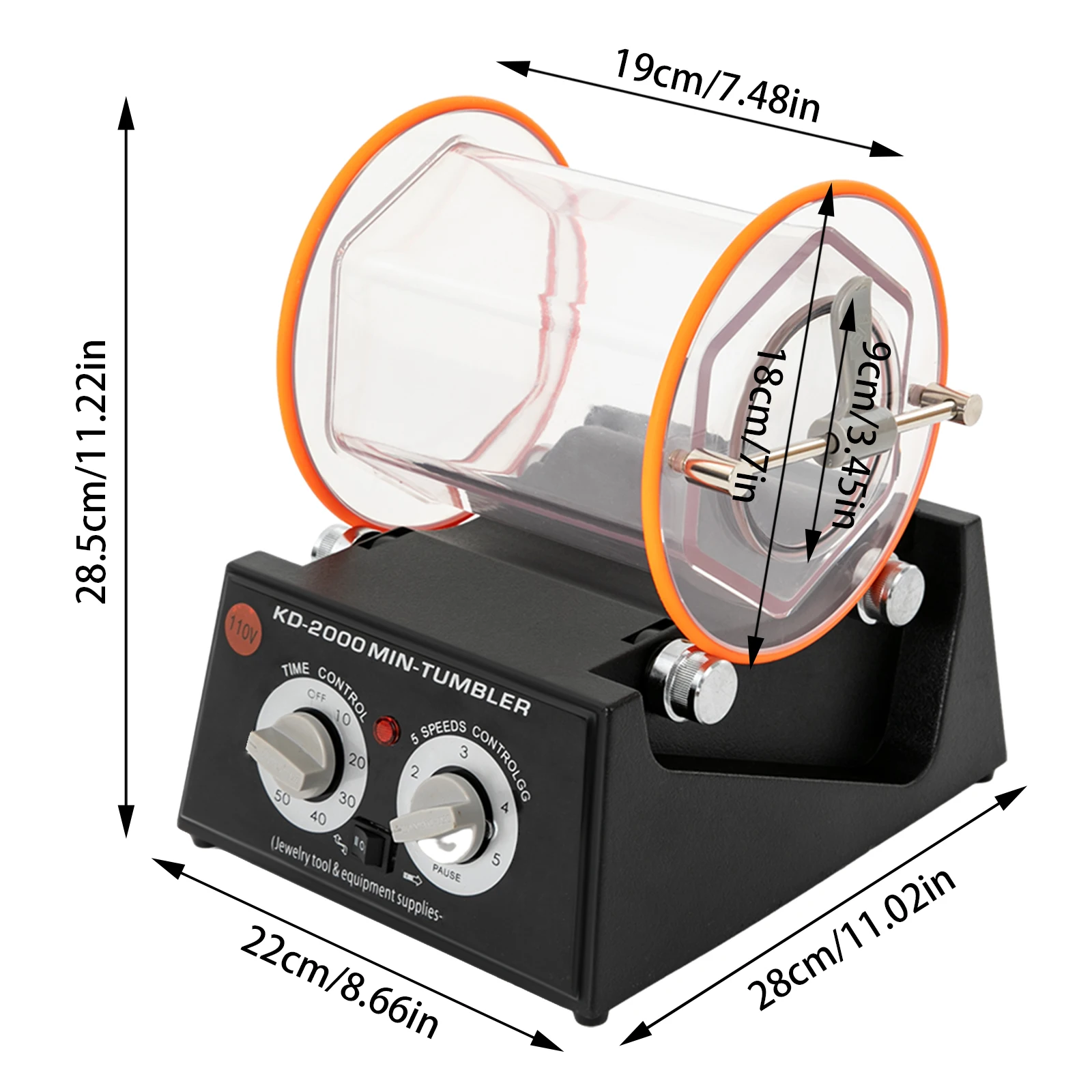Adjustable Design: Independent time and speed control knobs allow you to adjust the time (10-60min) and speed (5 gears adjustable) according to different materials and different surface requirements to achieve ideal polishing results.