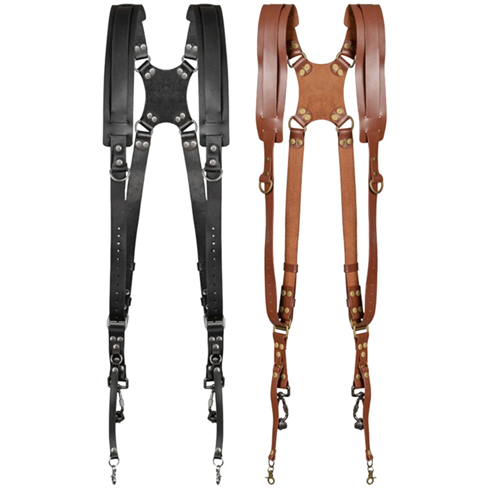 Double Shoulder Camera Strap Adjustable Leather Camera Shoulder Belt Portable Outdoor Photography Equipment
